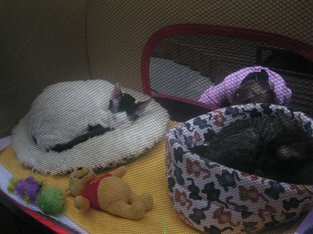 Δύο πανέμορφες βρετανικές κοντότριχες, ένας διαφορετικός επισκέπτης :lol:, και η Βανίλια καλωπίζοντας τον Όντιν, μέσα στο τρένο, την ημέρα της επιστροφής.:D