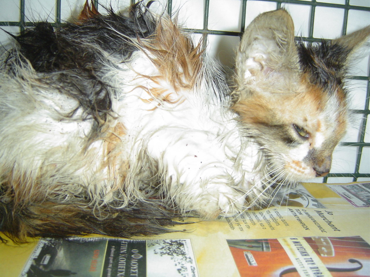 Τα δυο τελευταια μικρουλια που βρεθηκαν στον δρομο μας. Μια τριχρωμη φουντωτη μικρουλα αποστεομενη στην κυριολεξια και να τρικλιζει απο αδυναμια σε πολυσυχναστο κεντρικο σημειο της πολης. Καποιοι την εβλεπαν, που με το ζορι προσπαθουσε να περπατησει και απλα απομακρυνοταν για να μην ερθουν σε επαφη με το ατυχο μικρο, καποιοι αλλοι περνουσαν αδιαφοροι και καποιοι ελαχιστοι γυρισαν και την κοιταξαν με συμπονοια λεγοντας "αχ το καημενο, αυτο δεν εχει ουτε μερα μπροστα του".