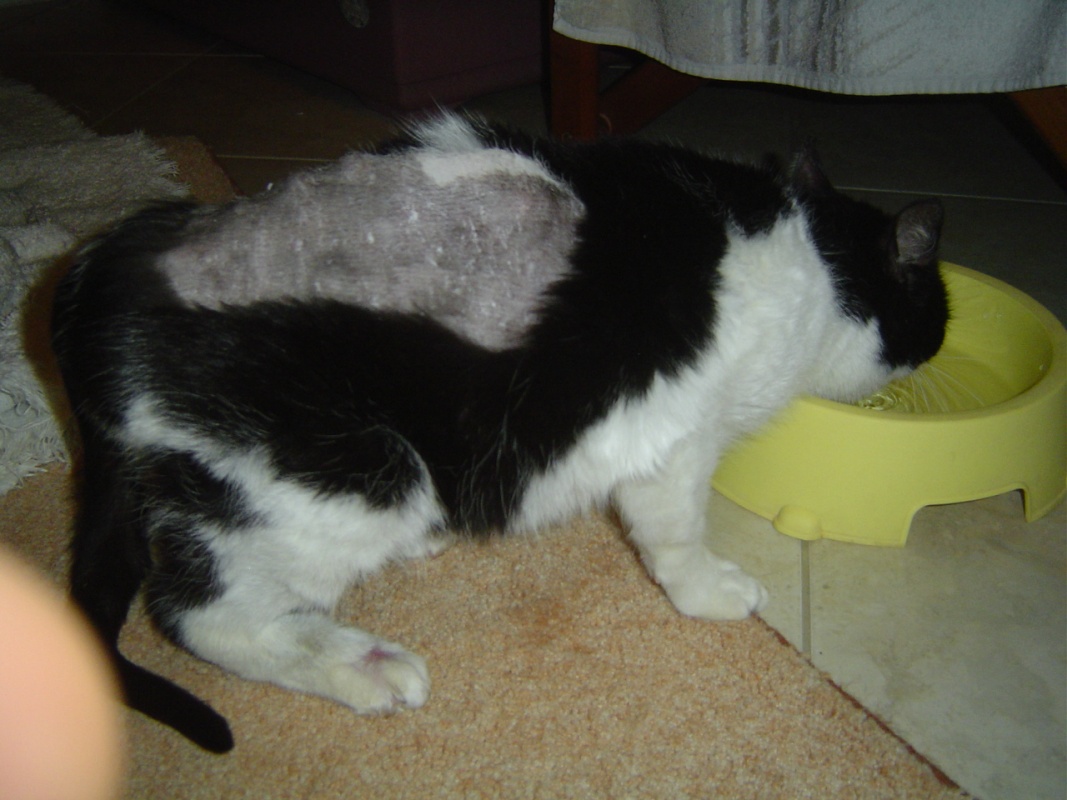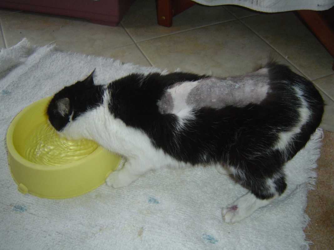 Ζητησα να γινει το αδυνατον δυνατον για να ζησει ο γατος και αρχισαν μεταγγισεις και εξετασεις και προετοιμασια χειρουργειου. Ο γατουλης τα καταφερε και τους διεψευσε. Μετα απο το χειρουργειο και νοσηλεια 10 ημερων στην εντατικη με πεθιδινες και μορφινες για τους πονους και αλλες 5 μερες νοσηλεια στην παθολογικη γυρισε στο σπιτι και τωρα ειναι υγιεστατος με την καθημερινη του φαρμακευτικη αγωγη.