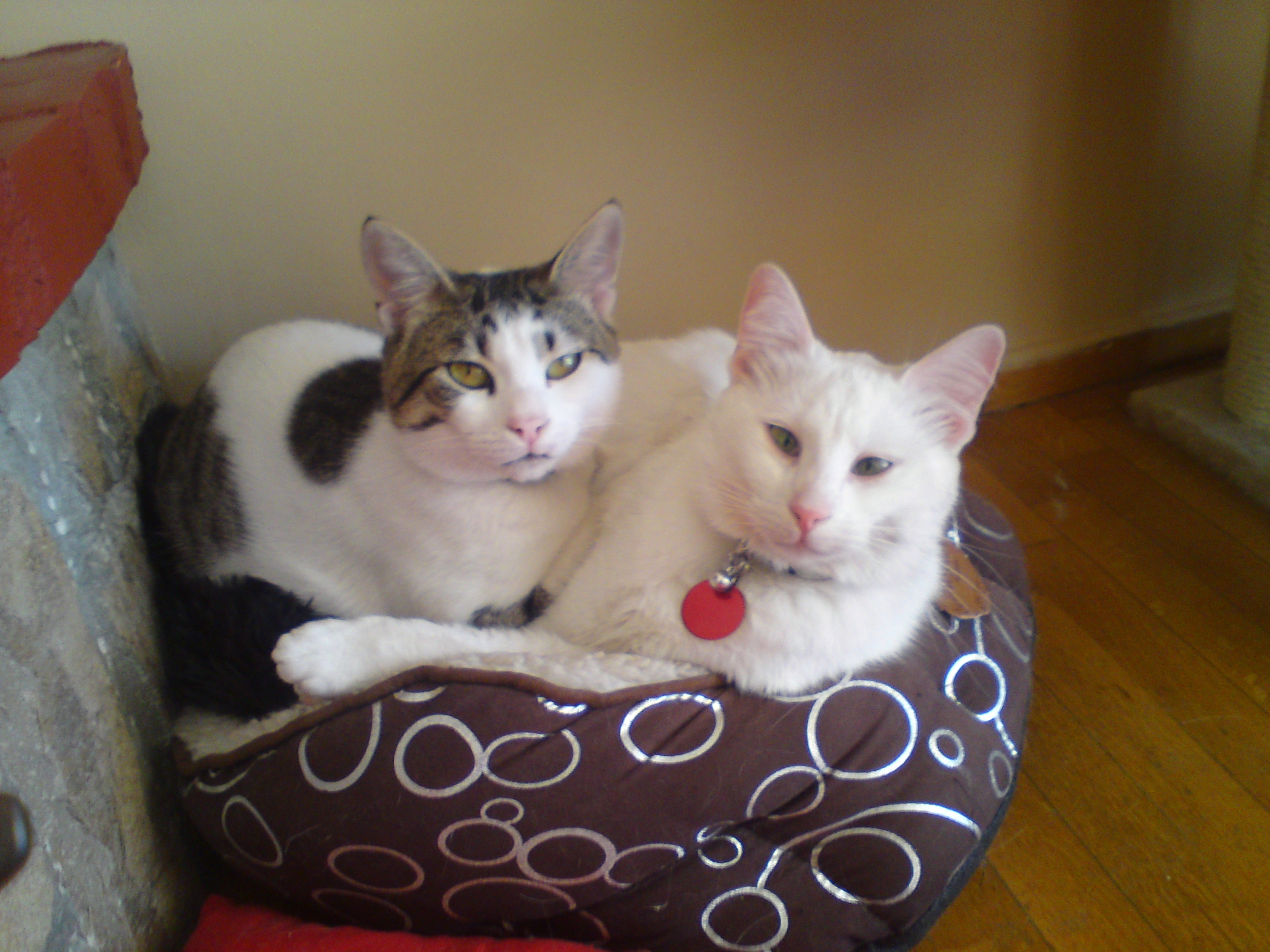 Καλησπέρα. Έχω 2 γάτες την Μπιάνκα και τον Κίκο. Ζουν μαζί εδώ και 5 χρόνια. Είναι και οι δύο στειρωμένες. Ένα απόγευμα άκουσα ουρλιαχτά και πήγα στο σαλόνι και τα είδα μπάλα να σκοτώνονται.. Δεν μπορούσαμε με τον φιλο μου να τα χωρίσουμε. Αν λείπαμε από το σπίτι θα είχαν σκοτωθεί στην κυριολεξία. Δεν πίστευα μέχρι τότε καν ότι μπορούν να τσακωθούν σαν τους γάτους που βλέπω έξω. Ψιλομάλωναν που και που αλλά σαχλαμάρες. Τις περισσότερες ώρες ήταν αγκαλιά όπως στη φωτογραφία. από τότε επιχειρήσαμε να τα βάλουμε άλλες 3 φορές μαζί αλλά έγινε το ίδιο ακριβώς πράγμα. πλέον την γάτα την έχω αφήσει στους γονείς μου και ο Κίκο (ο οποίος είναι και η αδυναμία μου) μένει μαζί μου και τον έχω πλέον με μία άλλη γάτα που βρήκα πριν 2 μήνες στο δρόμο. Σας έχει τύχει κάτι παρόμοιο? Τι μπορεί να έφταιξε?