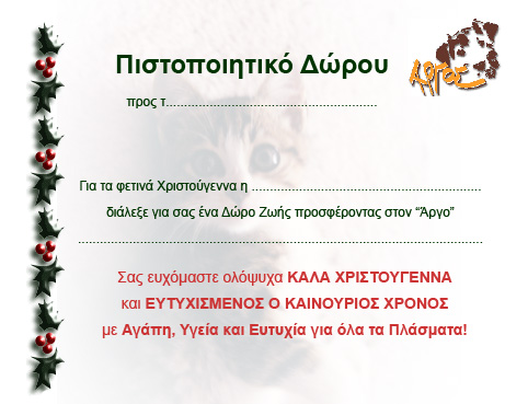 Οσοι θελουν να χαρισουν στον αργο τα δωρα των χριστουγεννων των φιλων τους θα παραλαβουν αυτο το certificate που μπορουν να το δωσουν αντι για δωρο στους φιλους