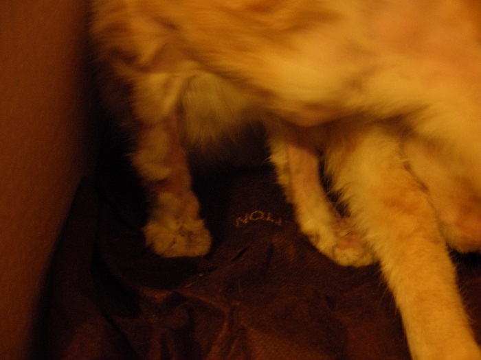 Η κτηνίατρος είπε ότι δεν μπορεί να κάνει κάτι, μιας και αυτό το πράγμα έχει ξεκινήσει εδώ και ένα μήνα και του έφαγε την τρίχα σιγά σιγά από μέσα. Το μόνο που πρότεινε είναι λίγη fucidin στα ποδαράκια και καλό φαγητό, για να μεγαλώσει όσο πιο γρήγορα η τρίχα, το οποίο βέβαια δεν είναι και σίγουρο, ότι θα συμβεί.
