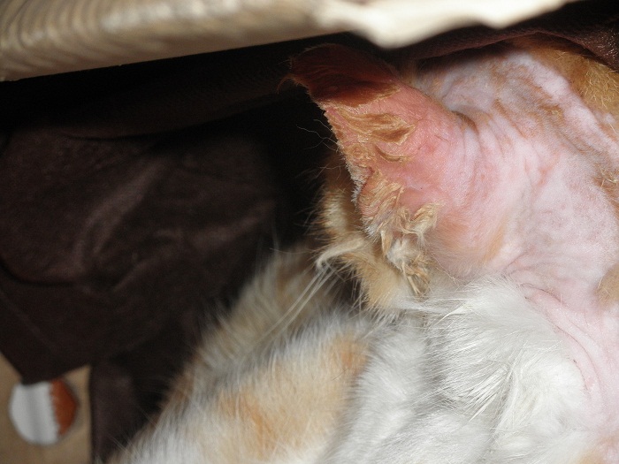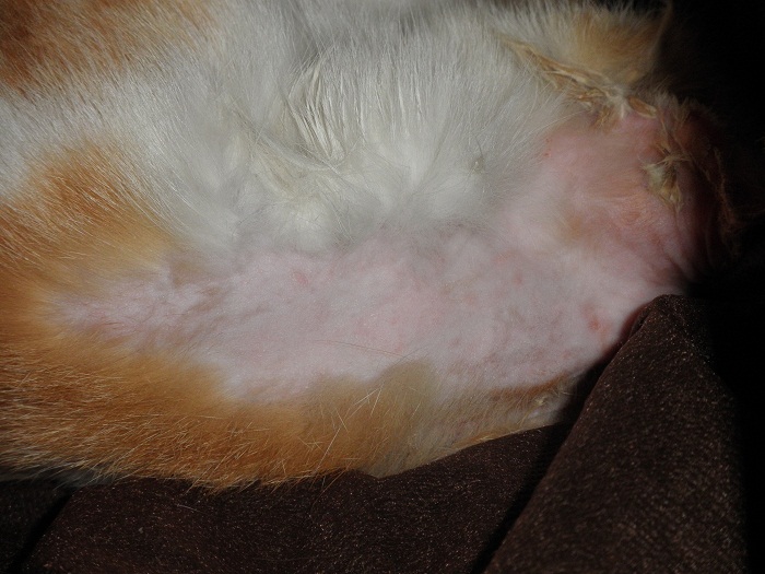 Καλησπέρα, δεν ξέρω αν και πώς θα βοηθήσω με αυτήν την απάντηση: Εχω 2 γάτες. Ο αρσενικός μου εμφάνισε ίδια συμπτώματα με αυτά που περιγράφεις, και μετά από αιματολογικές, η διάγνωση ήταν ιδιοπαθής δερματοπάθεια. Από τότε είναι με κορτιζόνη (μισό χαπάκι πρεζολον κάθε μέρα για το υπόλοιπο της ζωής του). Τα συμπτώματα έχουν υποχωρήσει, και η ποιότητα της ζωής του έχει βελτιωθεί δραματικά, δεν έχουν όμως εξαφανιστεί. Συνεχίζει να παρουσιάζει ερεθισμό με απώλεια τριχώματος στην περιοχή του ερεθισμού, καμία σχέση όμως με την αρχική κατάσταση (απώλεια τριχώματος σε πόδια, σώμα, πάνω από τα μάτια, χάλια μαύρα). Το τρίχωμα όταν πάσχουν από κάτι τέτοιο το χάνουν γιατί λόγω φαγούρας γλύφονται συνέχεια επίμονα σε αυτά τα σημεία, τα οποία είναι εντελώς τυχαία, με πιο συχνή την εμφάνιση σε μασχάλες, πάνω από τα μάτια και πόδια. Απλά στο αναφέρω για να ξέρεις οτι υπάρχει και αυτή η ασθένεια, αυτό το ενδεχόμενο.
