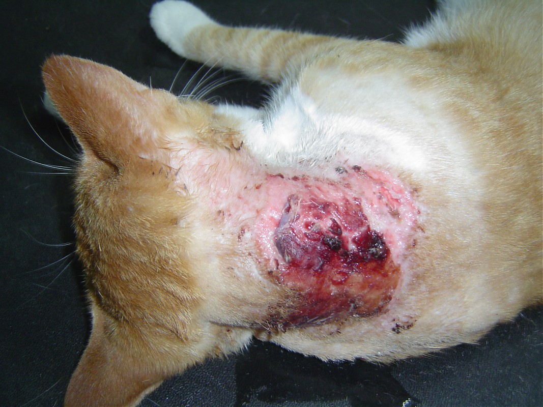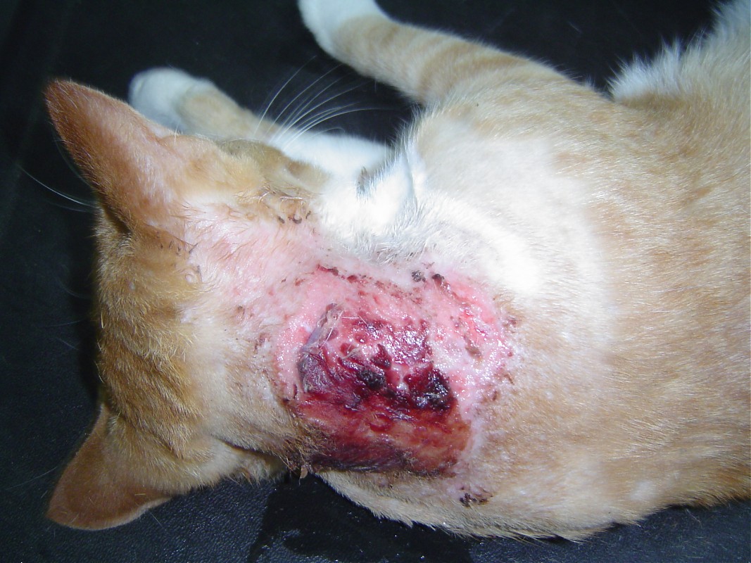 Αγαπητη Δωρα, αν εννοεις την πληγη του γατου στον λαιμο, ναι ειναι πραγματι μεγαλη αλλα ευτυχως εκτος απο δυο σημεια μικρα ολη η υπολοιπη ειναι επιδερμικη. Το κακο ειναι οτι λογω του σημειου δεν μπορει να τοποθετηθει κολλαρο στο ζωο για να μην το ξυνει γιαυτο και η αποθεραπεια του θα παρει χρονο.