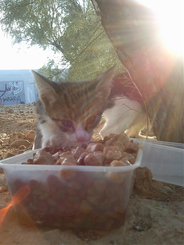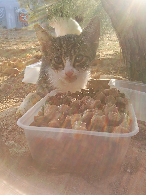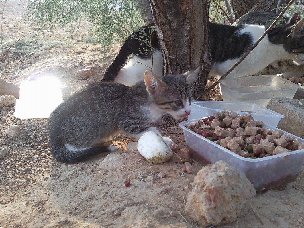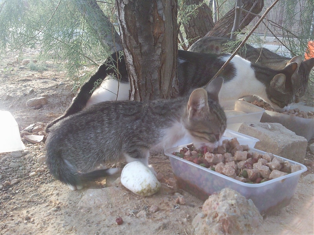 . Δεν καταφέραμε όμως να την πιάσουμε, γιατί ήταν κλεισμένη σε έναν χώρο που δεν έχουμε καμία πρόσβαση.Τα υπόλοιπα ήταν μια χαρά.Είχαμε βέβαια κάποιες απουσίες, αλλά θέλω να ελπίζω ότι ήταν τυχαίο, γιατί κι άλλες φορές δεν τα βλέπουμε όλα. Επίσης πήρα το μικρό πιτσιλάκι για να το φιλοξενήσω. Κορίτσια τόσο καλό γατί, το βράδυ δεν με ενόχλησε καθόλου, ούτε που άκουσα την φωνούλα της. Κοιμήθηκε στον καναπέ όοοολη την νύχτα