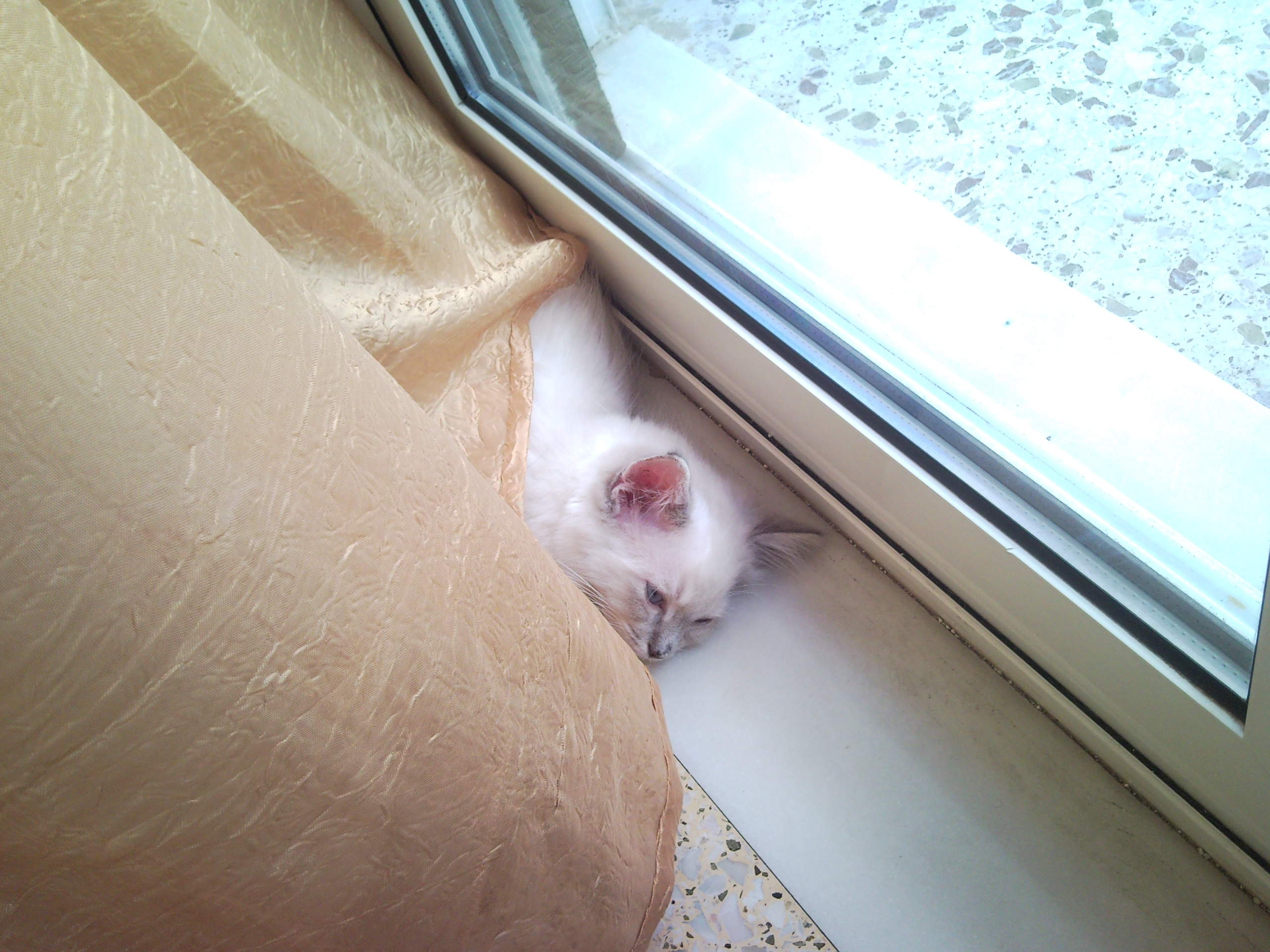 Η Άρτεμις τη στιγμή που ανακαλύφθηκε ενώ είχε χωθεί στη γωνία πίσω από την πολυθρόνα... :D
