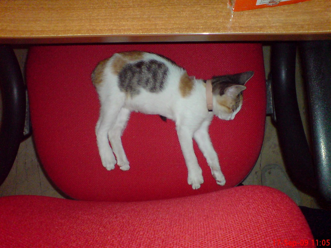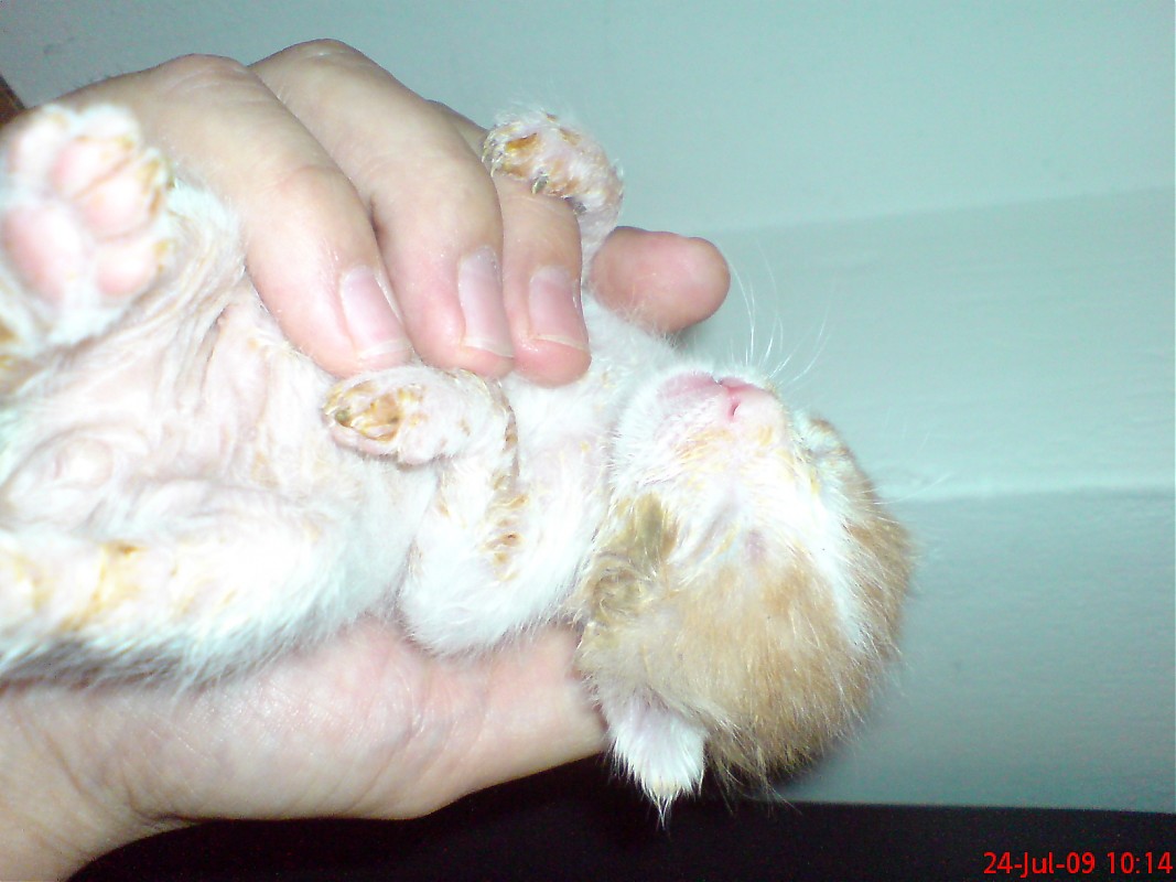 Το Σαββατο το πρωι πηρα τηλ. κτηνιατρο και του εξηγσα το προβλημα και μου ειπε οτι ειναι πολυ μικρα και οτι δεν μπορει να κανει τπτ και αυτος και να περιμενω ενδεχομενα και αλλες απωλειες!!?!!.Τελικα το γατακι αφου το ταϊσα και εκανε και "χουρ-χουρ" το αφησα και το βρηκα μετα απο 3 ωρες περιπου νεκρο