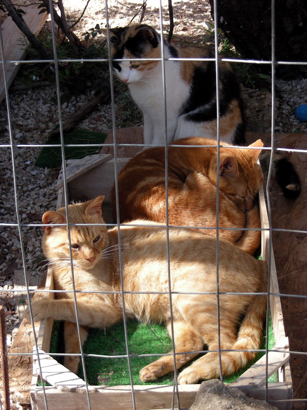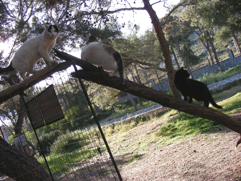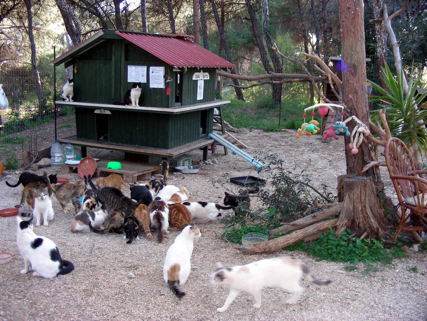 στον οποίο οι γατούλες είναι προφυλαγμένες από τα σκυλιά, μπορούν όμως να μπαινοβγαίνουν ελεύθερα σκαρφαλώνοντας στα γύρω δέντρα: