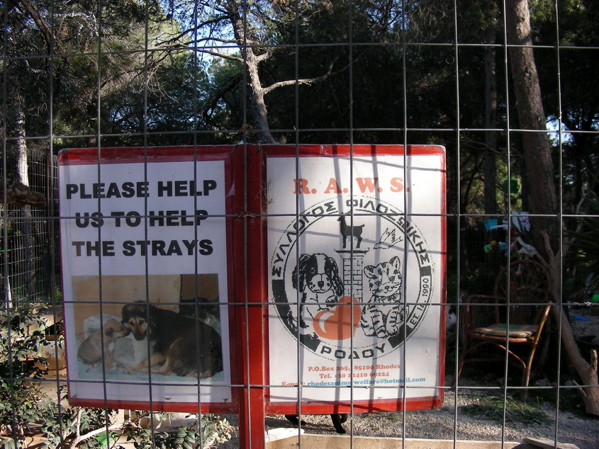 Στην Καλλιθέα της Ρόδου έχει γίνει μια πολύ αξιόλογη προσπάθεια από μια τοπική φιλοζωική ομάδα, τη Rhodes Animal Welfare Society (η οποία απαρτίζεται κυρίως από ξένους που έχουν γίνει μόνιμοι κάτοικοι του νησιού -γιατί δεν εκπλήσσομαι; ). Εκτός από τις στειρώσεις και τις υιοθεσίες, έχουν φτιάξει ένα πολύ καλό καταφύγιο για γατούλες, στην Καλλιθέα, λίγο πιο έξω από την πόλη της Ρόδου. Τον χώρο, απ' ό,τι κατάλαβα, τους τον παραχώρησε ο εκεί Δήμος.