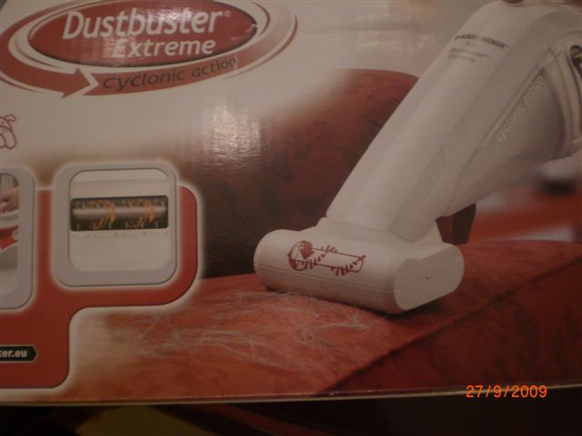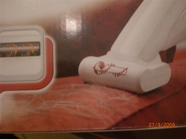 στο κουτι εχει μαλιστα ενα καναπε με τριχες επανω και δειχνει το σκουπακι με το ειδικο εξαρτημα για τις τριχες να το καθαριζει....