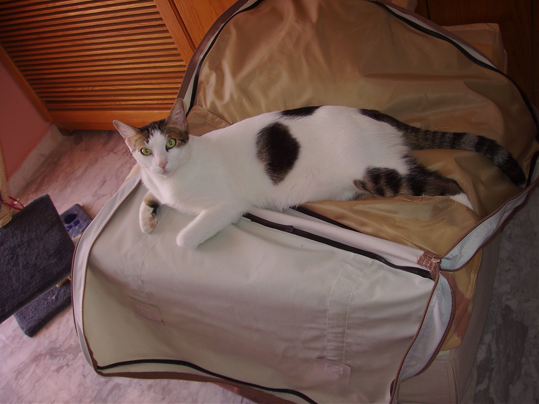 Λοιπόν, πρόκειται για καταπληκτικό παιχνίδι. Ορίστε μια κοντινή φωτό - είναι λίγο πλαϊνή για να φαίνονται και οι εσωτερικές τρύπες από όπου ανεβοκατεβαίνουν οι γάτες μεταξύ των ορόφων. Όχι όμως ΟΙ ΔΙΚΕΣ ΜΟΥ ΓΑΤΕΣΟι δικές μου γάτες, ως απεριορίστου εξυπνάδας, προτίμησαν το ... βαλιτσάκι του παιχνιδιού!