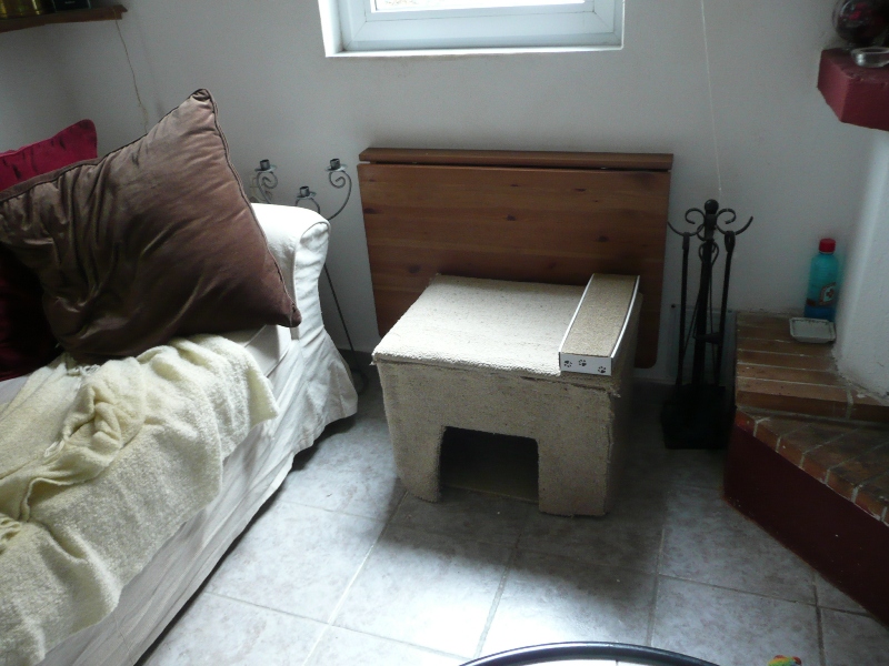 Μας το έφτιαξε η μαμά μας με ένα χαμηλό τραπεζάκι από τα σκουπίδια που τύλιξε με μια παλιά μοκέτα. Είναι ζεστούλι και μαλακό, οτι πρέπει για παιχνίδια, κρυφτούλι και νυχιές.