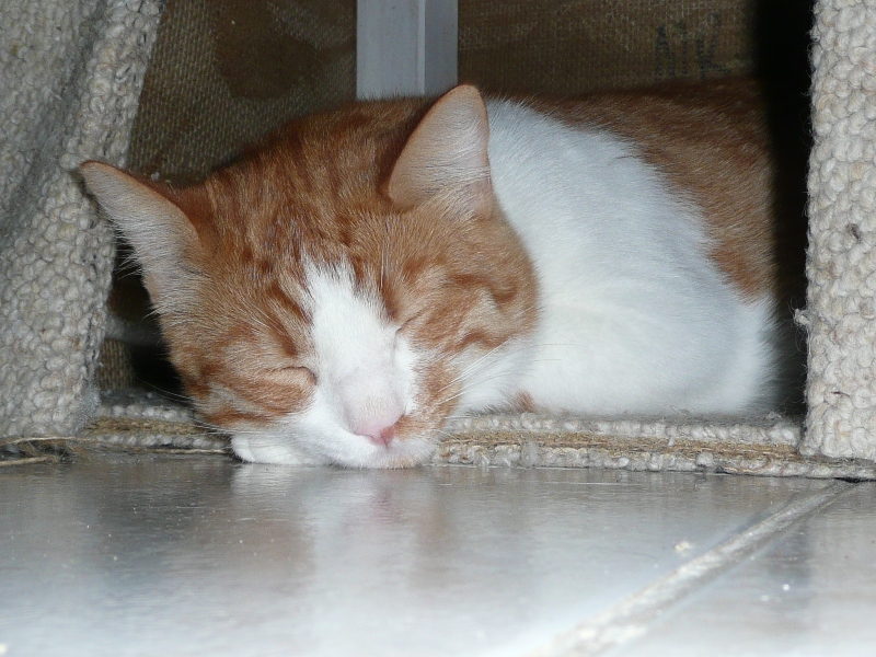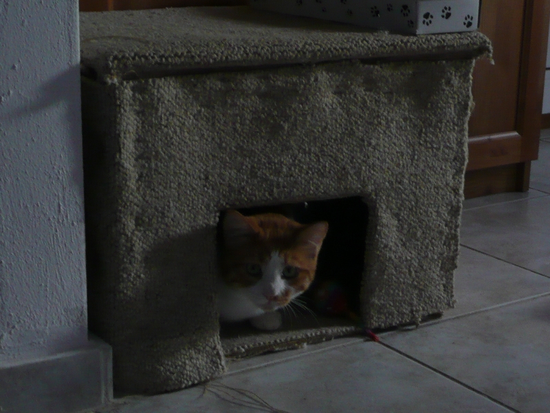 Ο Ρού μου, αυτός ο απόλυτα ήρεμος και αγαθός γατούλης γίνεται τίγρης μόλις πάει κάποια από τις κυρίες να μπεί στο ... σπίτι του. Η Κείρα και η Πούνκη το γρατσουνάνε και σκαρφαλώνουν πάνω του αλλά μέσα δεν μπαίνουν πια.Κι εγώ είμαι μέσα στην καλή χαρά που επιτέλους ο Ρού βρήκε ένα μέρος να γλυτώσει απο τις ξαφνικές επιθέσεις που τον τρομάζουν γιατί δεν ακούει. Στο σπίτι του ξαπλάρει την κορμάρα του, βγάζει το κεφάλι του έξω και κρύβει τα παιχνίδια του.