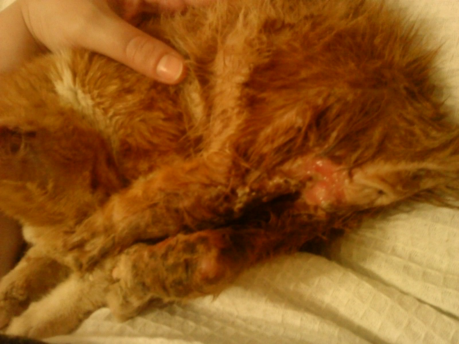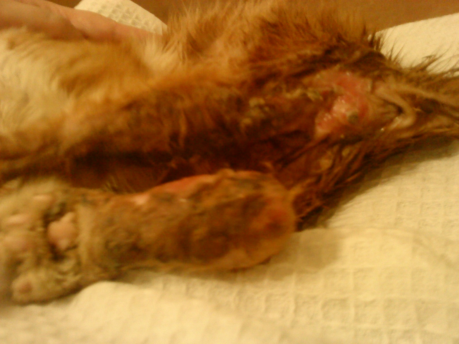 Περασε δυσκολες μερες ειχε καθετηρα ( ειχε κανει εμφραξη κι εκανε εγχειρηση)και ουρολοίμωξη και κοπρόσταση και οι πληγουλες πισω στο πωπουδακι και τα ποδαρακια του δεν κλεινουν. Παρ αυτα με τη συμφωνια του γιατρου μας πηγα χτες και το απηγαγα με τα τσιμπραγκαλα του γιατι ειχε ασυλοποιηθει πια, κοντευε να τα παιξει τοσο καιρο στο γιατρο.