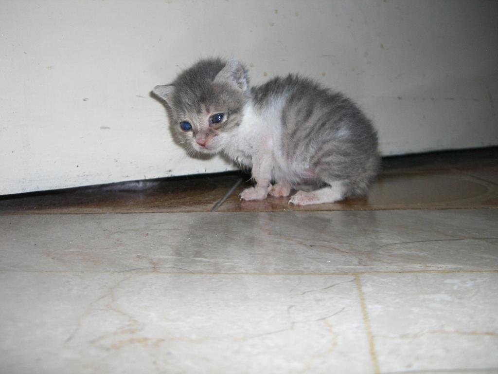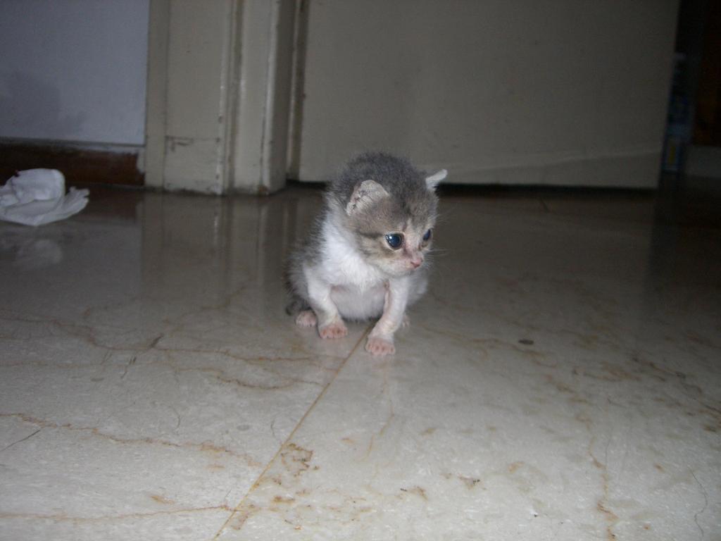 Του δινω το wean up, κ λιγη κονσερβα royal canin recovery. Τωρα ειναι 4 βδομαδων κ κ 3 ημερων, βασικα τοτε το βρηκα, π λογικα τοσο περιπου θα ναι. κοιταω sto internet κ 190 γραμμαρια που ειναι τωρα αντιστοιχει σε 2 βδομαδων γατακι. Επρεπε να ναι τουλαχιστον 300γρ:(:(. θα παρω τηλεφωνο τν γιατρο αυριο... αυτεσ τσ φωτο τσ εβγαλα σημερα, το καημενο εκεινη τι στιγμη εκανε τν αναγκη του:redface: