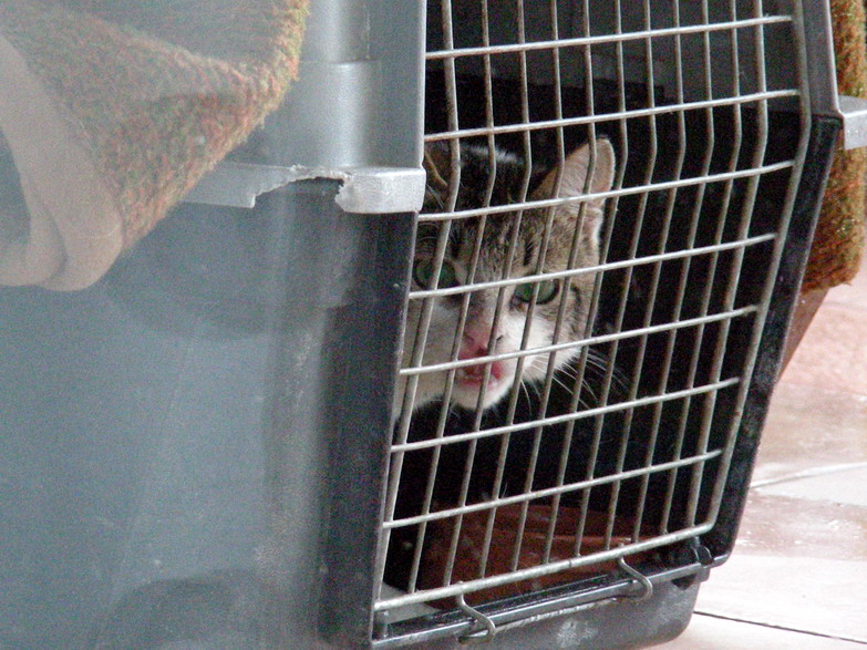 Τουλάχιστον όμως δεν επιτίθεται πια. Όταν του πρωτοάνοιξα την πόρτα απ'το κλουβάκι (έχοντας ακριβώς απέναντι ανοιχτό το πορτάκι της γατοφόρου) μαζεύτηκε πάλι πίσω-πίσω και δεν έβγαινε με τίποτα. Αναγκάστηκα ν' ανοίξω το κλουβάκι από πάνω και να τον σβερκώσω για να τον βάλω στη γατοφόρο. :/: Και είχε πάλι εκείνο το τρομοκρατημένο βλέμμα "τι θα μου κάνετε πάλι τώρα":(
