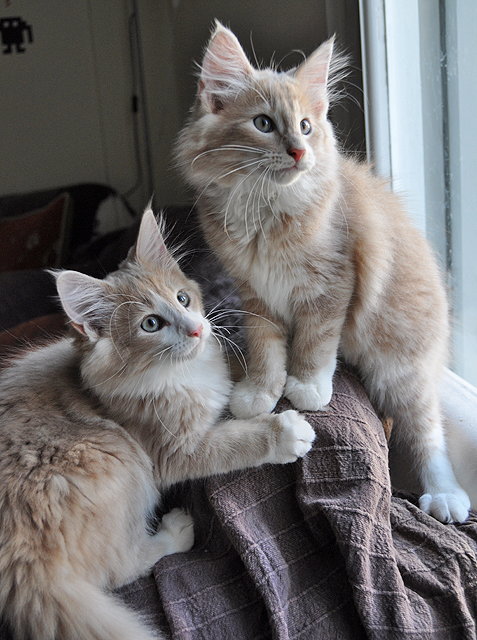 Τα γατάκια μας αποτελούν μέλη της οικογένειάς μας, γι’ αυτό και επιλέγουμε πολύ προσεκτικά τους νέους τους ιδιοκτήτες. Τα μικρά παραμένουν με τη μητέρα τους μέχρι την τρυφερή ηλικία των δώδεκα εβδομάδων, ώστε να έχουν λάβει όλα τα απαραίτητα αντισώματα και την εκπαίδευση που θα τους χαρίσουν μια υγιή και ξέγνοιαστη ζωή μαζί σας. Θα έρθουν στην αγκαλιά σας πλήρως εμβολιασμένα, αποπαρασιτωμένα εσωτερικά και εξωτερικά και καταχωρημένα με ηλεκτρονική σήμανση. Φυσικά μαζί με τον μικρό σας σύντροφο παραλαμβάνετε το βιβλιάριο υγείας του, τα έγγραφα ηλεκτρονικής σήμανσης, και το πιστοποιητικό γενεαλογικού του δέντρου (pedigree) που πιστοποιεί ότι το γατάκι είναι καθαρόαιμο, και σας επιτρέπει να γνωρίζετε τους προγόνους του έως και τρεις γενεές. Όλα μας τα γατάκια δίδονται με συμβόλαιο υιοθεσίας, που υποχρεώνει τον νέο ιδιοκτήτη να εξασφαλίζει την ευημερία τους, να τα φροντίζει και να τα περιθάλπει όποτε προκύπτει ασθένεια, να φροντίζει για τον εμβολιασμό τους και να τα στειρώσει όταν φτάσουν στην κατάλληλη ηλικία. Σε περίπτωση που κάποιος από τους όρους του συμβολαίου αθετηθεί, διατηρούμε το δικαίωμα να επανεντάξουμε το γατάκι την αρχική του οικογένεια. Προτιμούμε να γνωρίζουμε από κοντά τη νέα οικογένεια του μικρού μας φίλου, οπότε αν αποφασίσετε ότι κάποιο από τα γατάκια μας σας μάγεψε, θα χαρούμε να σας υποδεχτούμε στην πόλη μας. Επίσης, μας ευχαριστεί πολύ να έχουμε επαφή με τα γατάκια μας και τις νέες οικογένειές τους ακόμα κι όταν φεύγουν από το σπιτικό μας. Θα χαρούμε να επικοινωνήσετε μαζί μας ώστε να απαντήσουμε σε οποιεσδήποτε απορίες σας σχετικά με τα γατάκια μας, τη φιλοσοφία μας, ή οτιδήποτε άλλο θα σας ενδιέφερε.