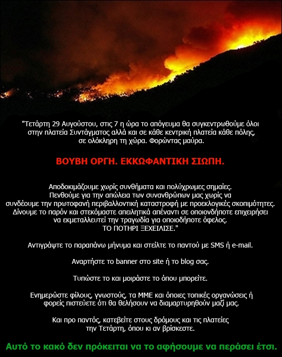 Aυριο (26/08/07) και ώρα 12.00 το μεσημέρι, συγκέντρωση διαμαρτυρίας για τις φωτιές και τα θύματα, έξω από τη βουλή.