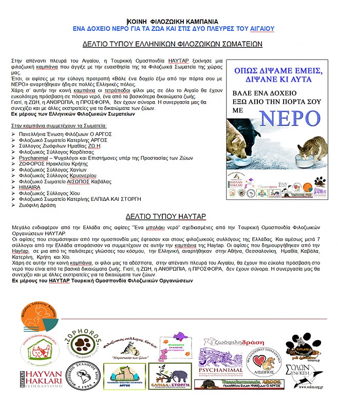 Ελλάδα Τουρκία - Νερό για τα αδέσποτα