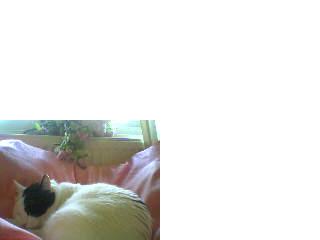 Βλεπετε ματι? Βλεπετε χερι απλωμενο??? Είναι πολύ απαλο και πολύ σκληροτράχηλο. Κυκλοφορει με φαλακρα αυτια τελευταια ( του χουνε πεσει τα αυτια απο τις τσιριδες της καλεσμενης) και ουρλιαζει σα σοπρανο σε σολο καθε φορα που θα την δει μπροστα του. Συνηθως παει κατω απο το κρεββατι, γιατι ουτε σε κλουβι δεν θελει να τη βλεπει και το στιγμιοτυπο που βλεπετε :να ειναι χαλαρο στο κρεββατι ειναι πρωτοφανες. Οταν εφυγα βεβαια δεν παρελειψε να επιτεθει: "Μη με κοιτάς ετσι.. κατι στραβο εχει το μουτρο σου...Αυτο το σπιτι ειναι δικο μου εδω.. το πιασες? Ουστ! Αυτοκτόνα! Τωρα ειπα!Εγώ ελέγχω εδω! "