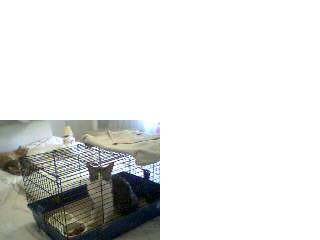 Εδω βλέπετε το κλουβι, το μελινακι, το καλοκαιρακι , το χιονακι μισο και το βουλιτσο ( το τερατακι εινα σκεπασμενο).. μετα το βλεπετε να σηκωνεται τρομαγμενο γιατι τολμησα να βγαλω το πετσετακι.. φυσικα το ξααβαλα οποτε ηρεμησε και το πλησιασε το καλοκαιρακι