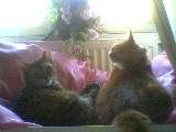 3.Κατοπιν εβγαλα την πετσετουλα και αρχισαμε την τρελη περιοδο.. ουρλιαζε απο την αρχη απιστευτα και ενω καθονταν σο ιδιο δωματιο χωρις να ουρλιαζει 2-3 ωρες με τα αλλα οταν τα εβλεπε αυτη μεσα στο σπιτι να τριγυρναει και τα αλλα εξω παθαινε σοκ πηδουσε μεχρι ενα μετρο και επιτιθονταν στο τζαμι και εμαθε και στο μελινακι να ουρλιαζει και μαλιστα χειροτερα απο αυτην. Χαμος. Μια περιοδο την ειχα να μη τα βλεπει καθολου. Πολύ δυσκολο για μενα αλλα ισως ξυπνησαν οι περιεργειες τους αμοιβαια... καθομουν με τη καλυψουλα στο γατοφορο μεσα και τα αλλα γυρω γυρω στο κρεββατι και της μιλουσα και τη μαλωνα οταν απιτιθονταν το ιδιο και το βουλιτσο και το μελινακι..