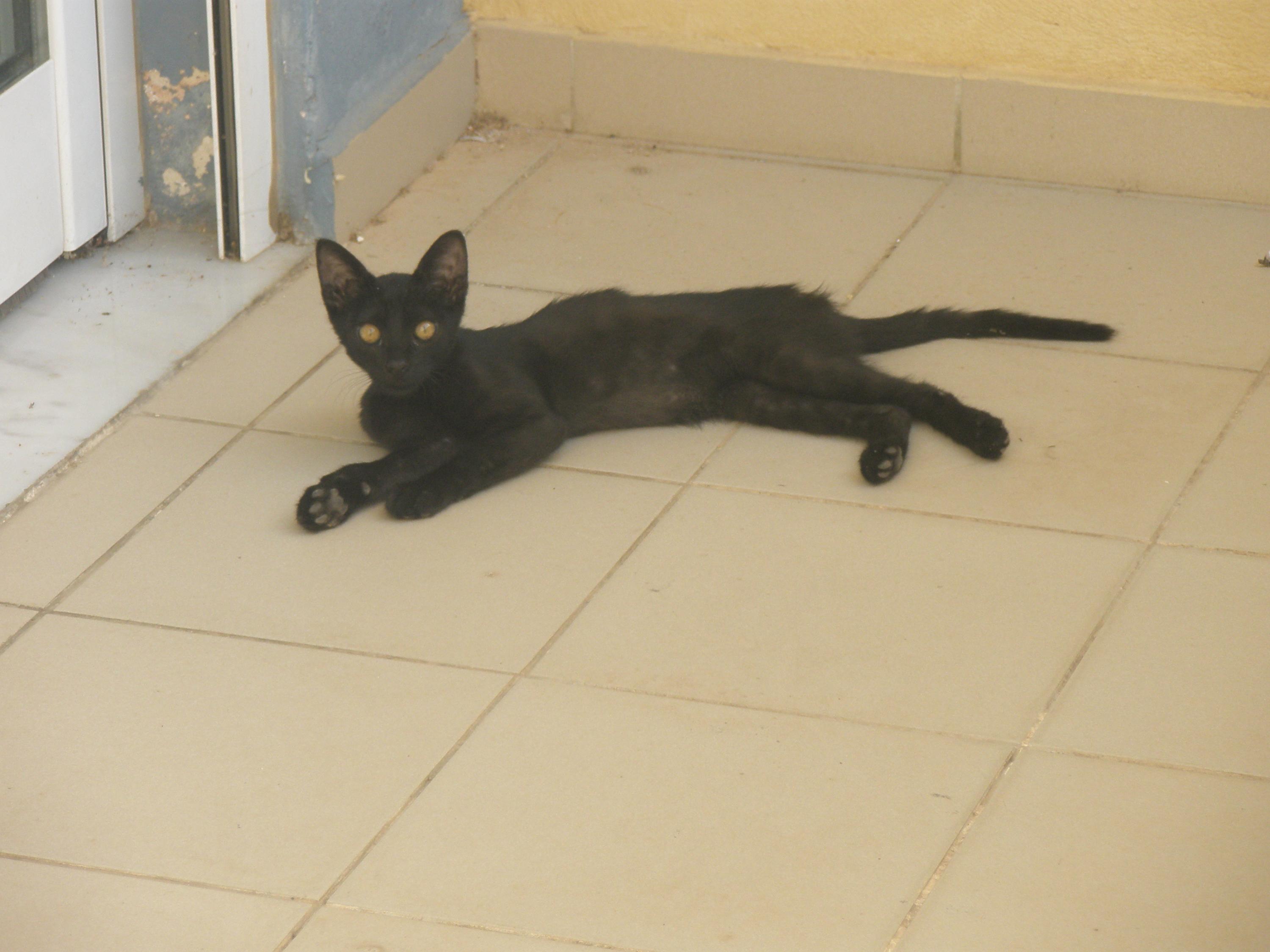 Σήμερα όμως πρόλαβα στο τσακ από 4 σκυλιά ένα μικρό μαύρο γατούλι, πολύ αδύνατο το καημένο (μάλλον είχε πολλές μέρες να φάει). Δε θέλω να το αφήσω έξω, θα το πιάσουν τα σκυλιά σίγουρα και είναι και πολύ αδύναμο... Θα το κρατούσα για λίγες μέρες, όμως αυτό είναι κάπως μεγαλύτερο από το προηγούμενο και φοβάμαι ότι θα καταφέρει να πηδήξει από το μπαλκόνι και θα καταλήξει πάλι στα σκυλιά. Μέσα στο σπίτι είναι πολύ δύσκολο να το έχω συνέχεια.