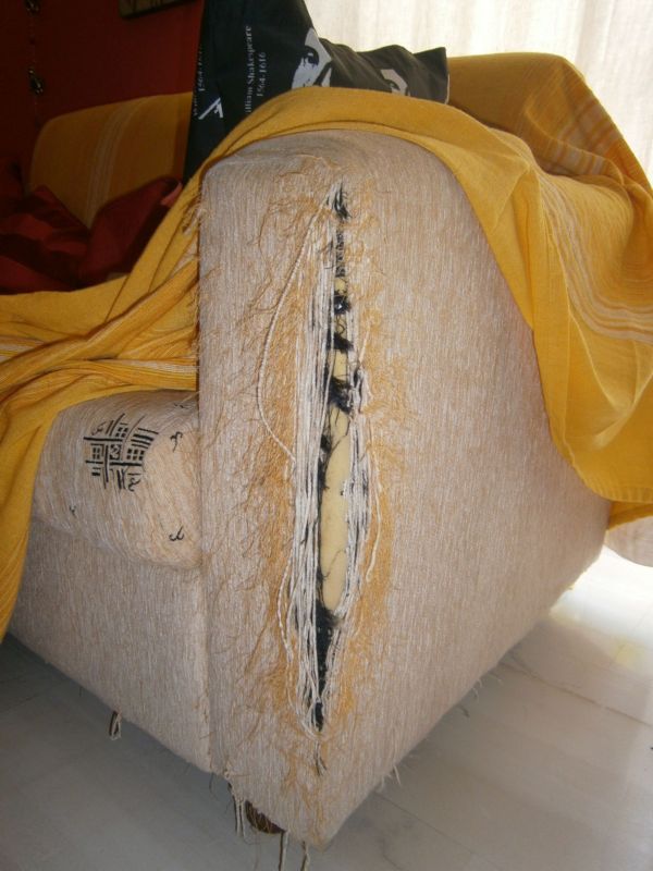 Ο Elvis με τη βοήθεια του Freddie άνοιξαν τρύπες κάτω από τον καναπέ και το έκαναν φωλιά!Φυσικά αγοράσαμε καινούργιο καναπέ χαμηλό με μηδεν περιθώρια να μπουν πάλι από κάτω!