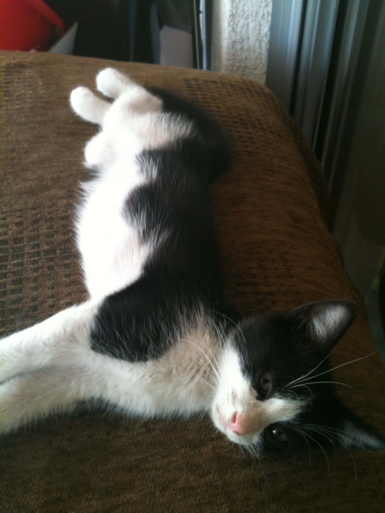 Ειναι αγορακι ασπρομαυρο,πολυ αδυνατο,εφαγε με μανια μολις του εβαλα κροκετες,το ψεκασα με frontline spray και το καθαρισα οσο μπορουσα με μωρομαντηλα!!
