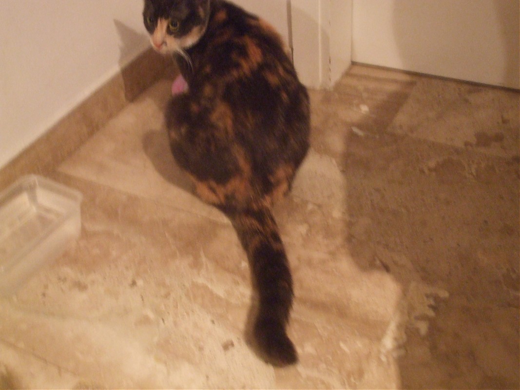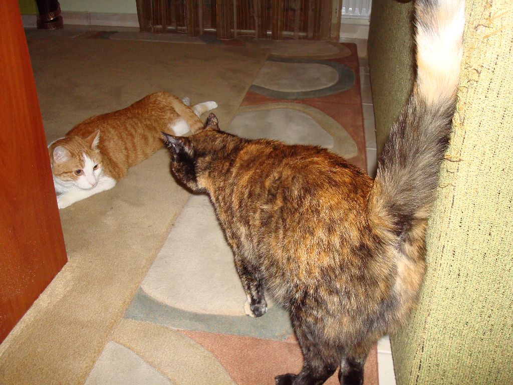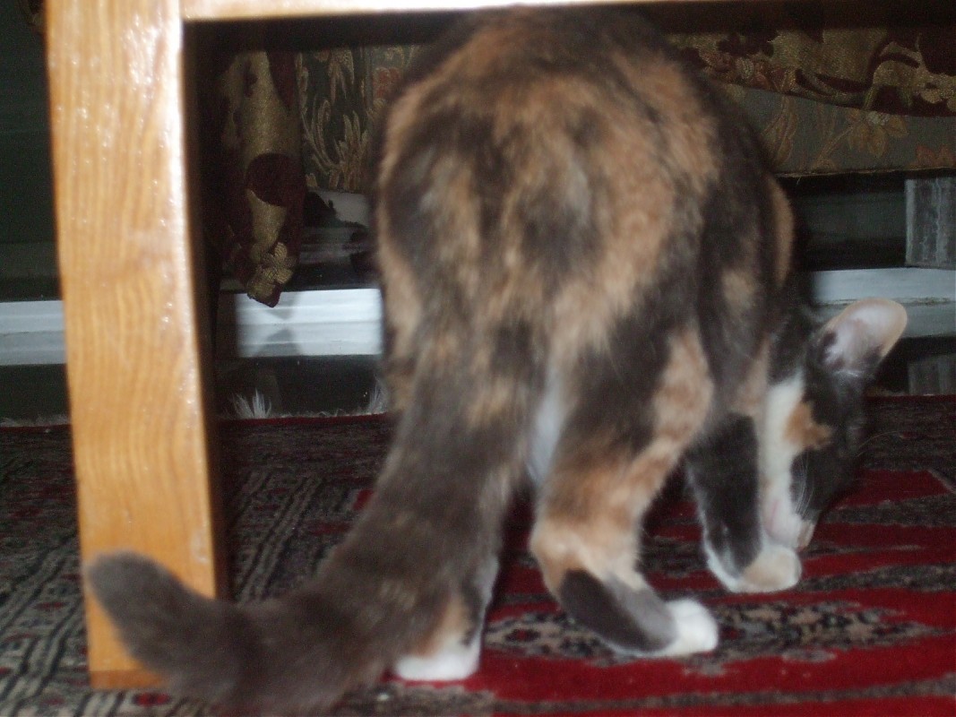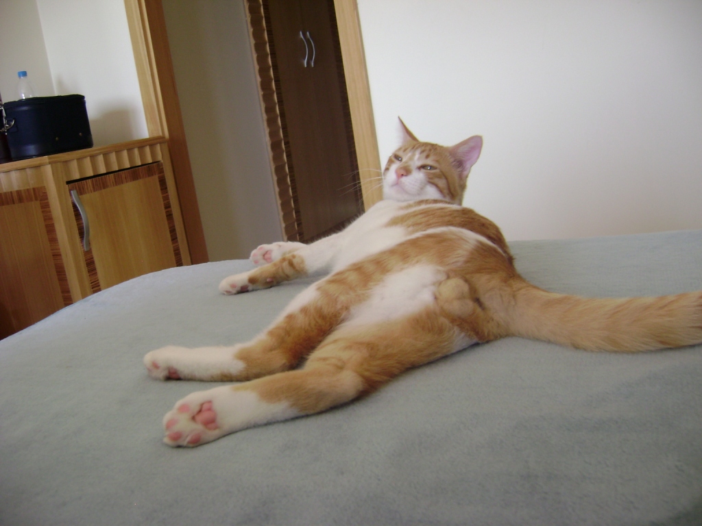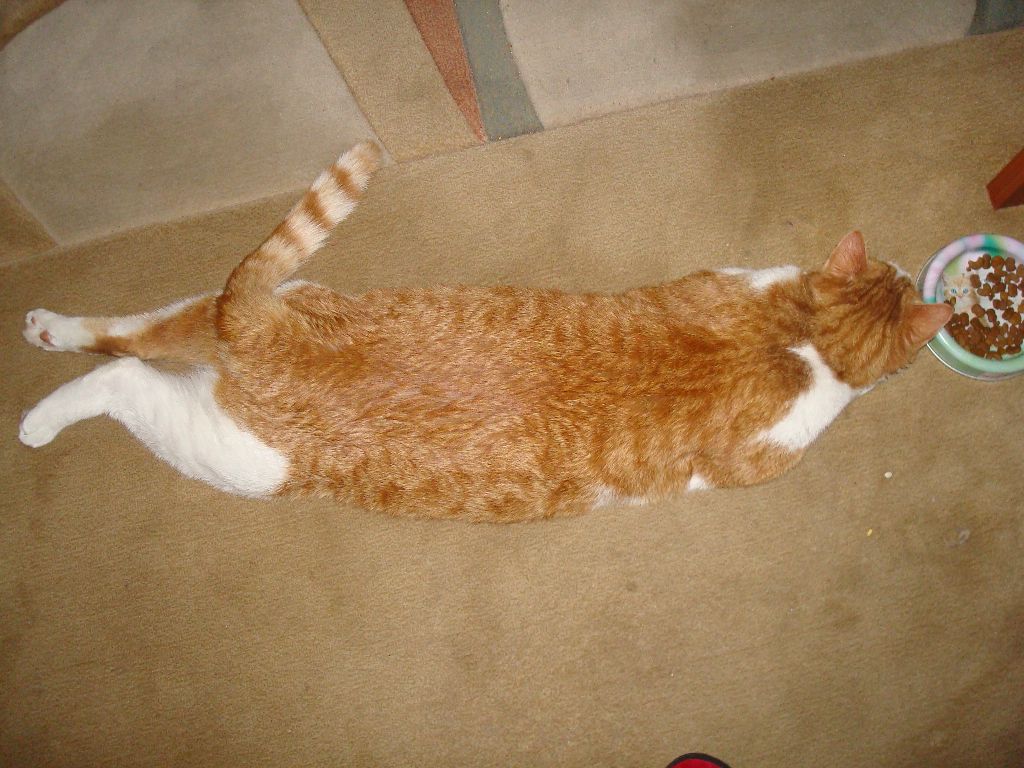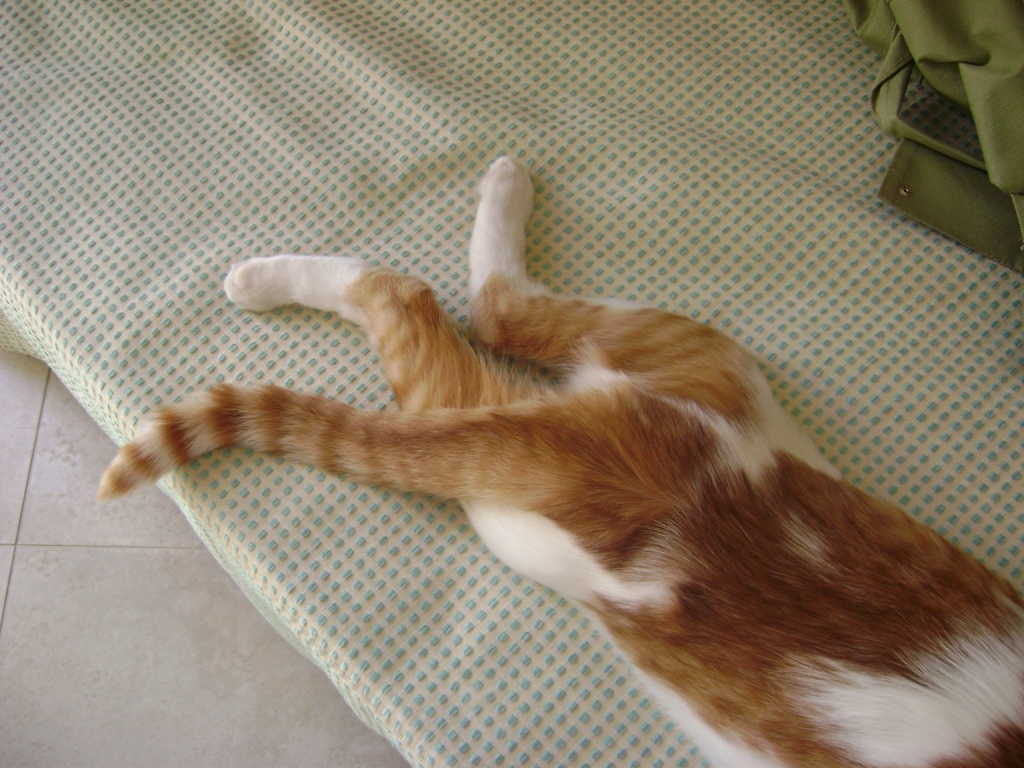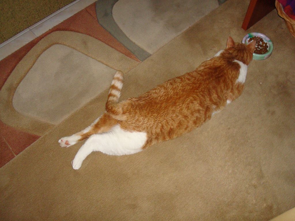 Και εδώ μαλλόν εντόπισε τις κροκέτες στο μπολάκι της Μυρτούλας και ξάπλωσε δίπλα για να το φύλαει, μήπως και πεινάσει να έχει καβάντζα.:blink:;)Τώρα για την στάση "βατραχάκι" δεν την πολυσυνήθιζει για αυτό και βιάστηκα να την αποθανατίσω!;):lol::lol: