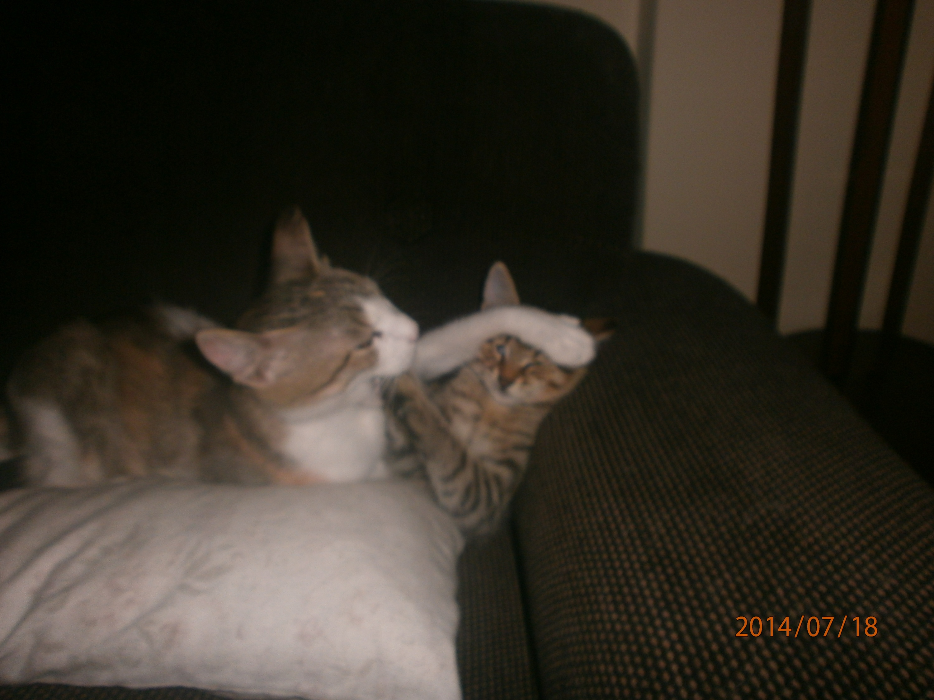 Τι όμορφα που έχουν γίνει όλα τους....μεγάλωσαν, πάχυναν και η μανούλα τι όμορφη....το πλένει μωρέ ακόμη μωράκι της είναι!!!! αχ βρε Ειρήνη μου ακόμη τίποτα έτσι....;;; να ελπίσουμε να πάνε όλα καλύτερα και να βρεθούν οι άνθρωποι που θα τα λατρέψουν!!! Με τα άλλα σου γατάκια τι έγινε;;; δεν έχουν έρθει σε επαφή ακόμη;;;