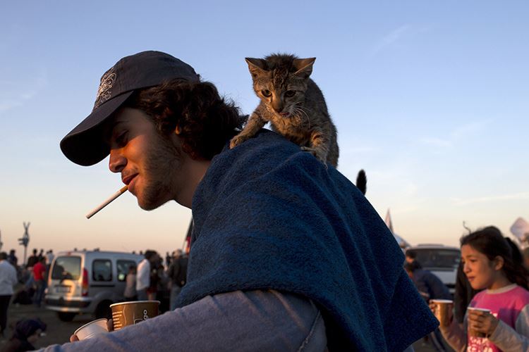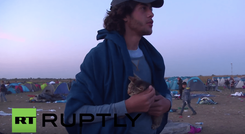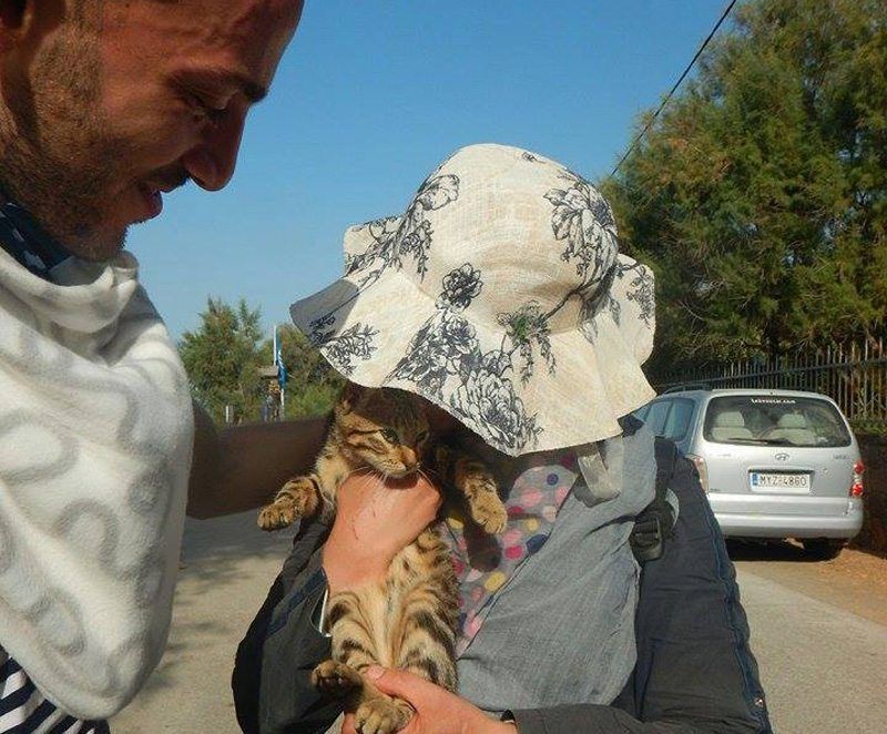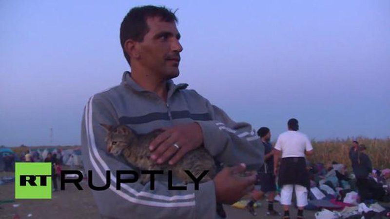 Οι άνθρωποι αυτοί σε αυτό το φευγιό μακριά από τις φλόγες του πολέμου που καίνε την Συρία πήραν μαζί και την γάτα τους με την οποία ταξιδεύουν εδώ και εβδομάδες.