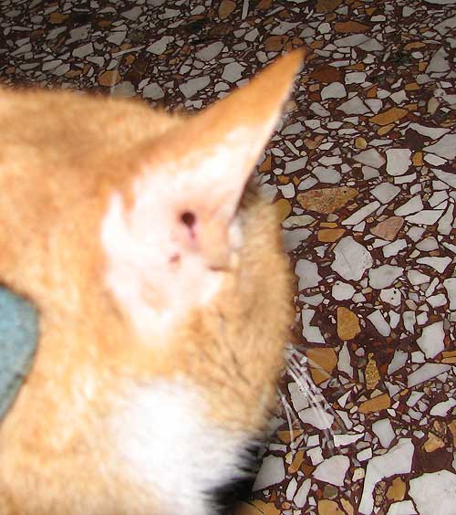 Δε ξέρω τί άλλο μπορώ και πρέπει να κάνω.. Επισυνάπτω φωτογραφίες του όπου φαίνεται η κατάσταση του ματιού του σήμερα. Είναι πολύ άσχημη η κατάσταση γιαυτό αν κάποιοι δεν αντέχουν ας μην τις δουν. Σε άλλες φωτογραφίες φαίνεται το αυτάκι του το οποίο έχει μια τρυπα και λείπει ολόγυρα της όλο το τρίχωμα.