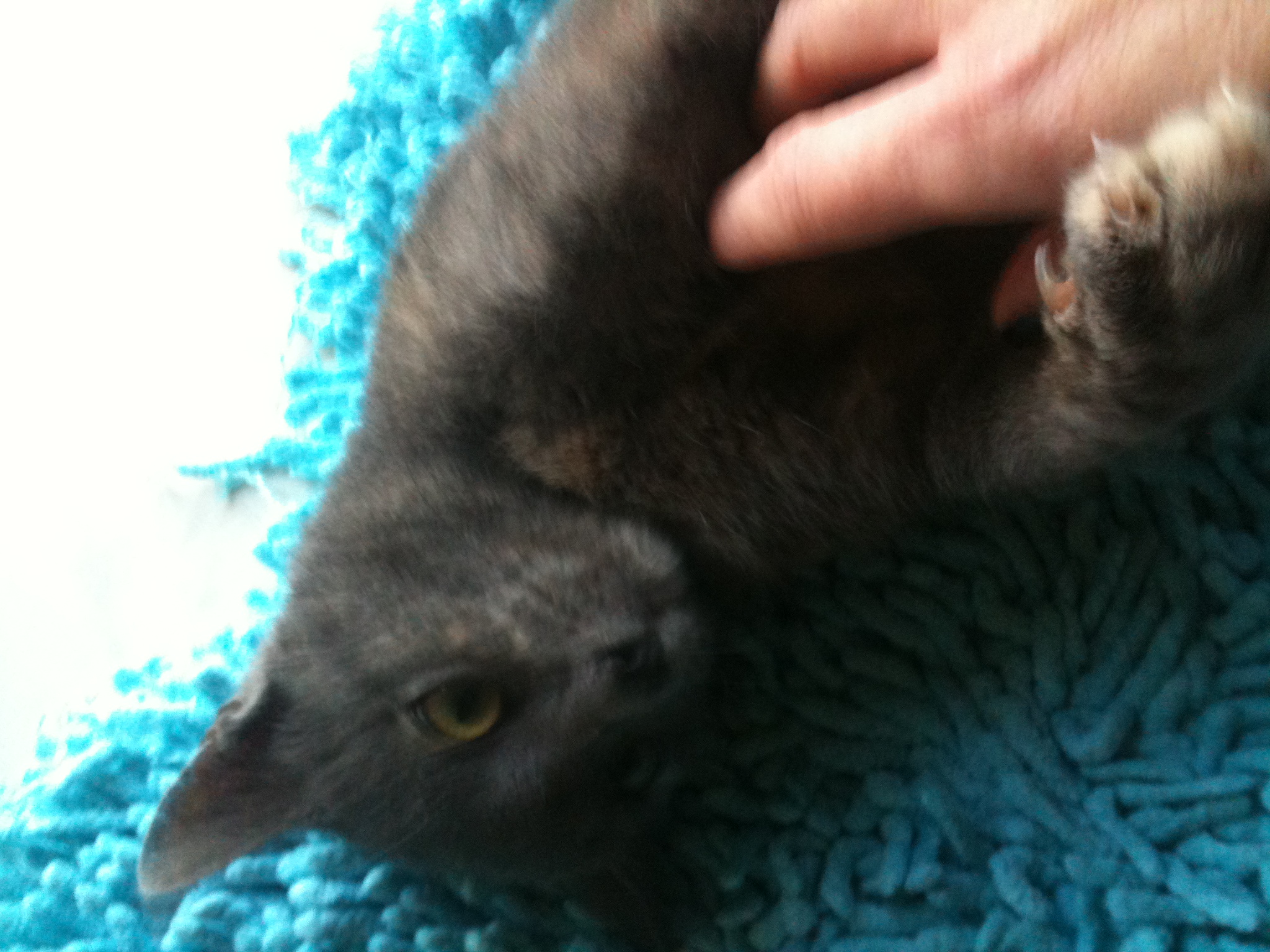 Καλησπέρα καλη χρονια σε ολους...η μικρουλα της φωτο είναι η μιλου...την παραμονή της πρωτοχρονιάς βγήκα ως συνήθως να ταισω τα αδεσποτάκια...μολις εφτασα στην πρωτη σκυλοπαρέα είδα οτι ειχαν πιάσει ενα περιστέρι και ενα γατάκι..το περιστερι δεν καταφερα να το σώσω αλλά ευτυχώς γλύτωσα τη μιλού η οποία χωθηκε στην αγκαλιά μου κοιτάζοντας με, με τα τεράστια πράσινα ματια της..δεν υπήρχε περίπτωση να την αφήσω εκεί..πήγαμε στον κτηνίατρο...είναι 5-6 μηνών,1,9 kg..κάναμε εμβολιο, πήραμε χαπάκι, βαλαμε αμπούλα καθαρίσαμε αυτάκια που είχαν ένα θέμα...και πήγαμε σπίτι...μέχρι σήμερα την είχα σε ένα δωμάτιο γιατί είπε ο γιατρός να καθαρίσει καλά από εσω-εξωπαράσιτα..σήμερα επιτέλους κάναμε μπανάκι και τριγυρναει στο σπίτι σνομπάροντας τους δικούς μου...είναι το πιο τρυφερο πλάσμα που υπάρχει...θέλει μόνο αγκαλία χαδια και κάνει συνέχεια πατουσάκια...