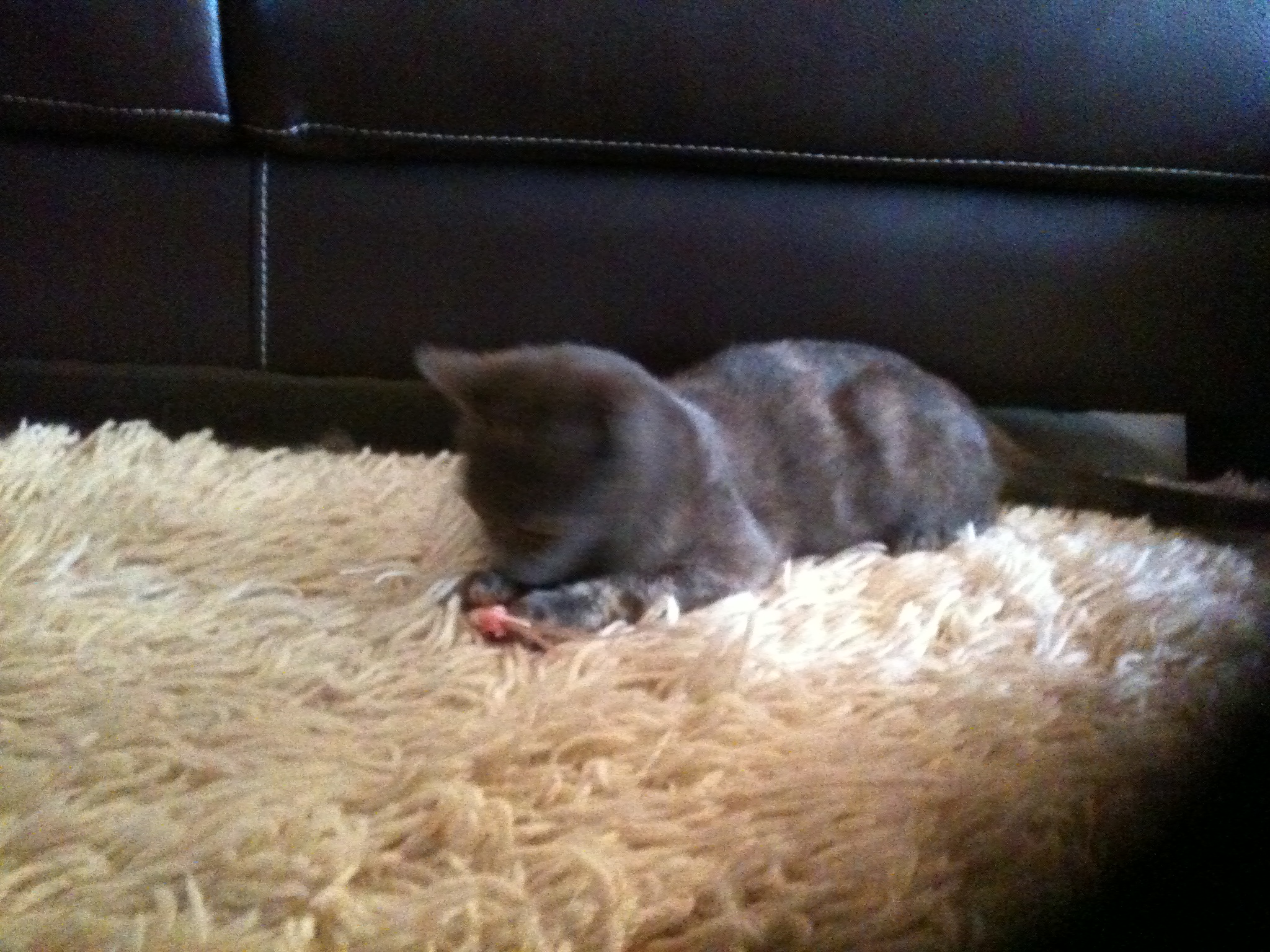 μολις ξυπνήσα και εφαγα κροκετούλες και μισό κονσερβάκι...το βράδυ μου ήταν υπεροχο...σνόμπαρα βεβαια το καινούργιο κρεβατακι μου και κοιμηθηκα στο υπεροχο λευκό πάπλωμα..καλά δεν έκανα??και τωρα παιζω με το αγαπημένο μου παιχνίδι το γκρι ποντικάκι!!καλημέρααααα