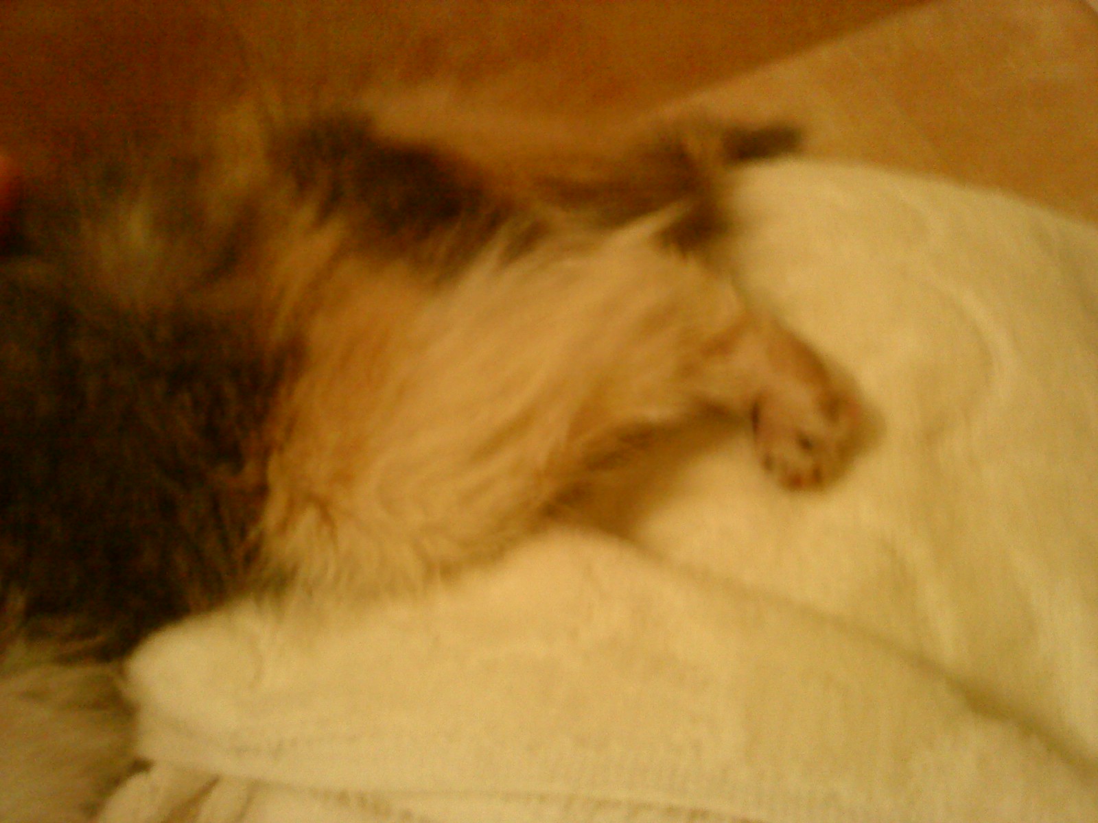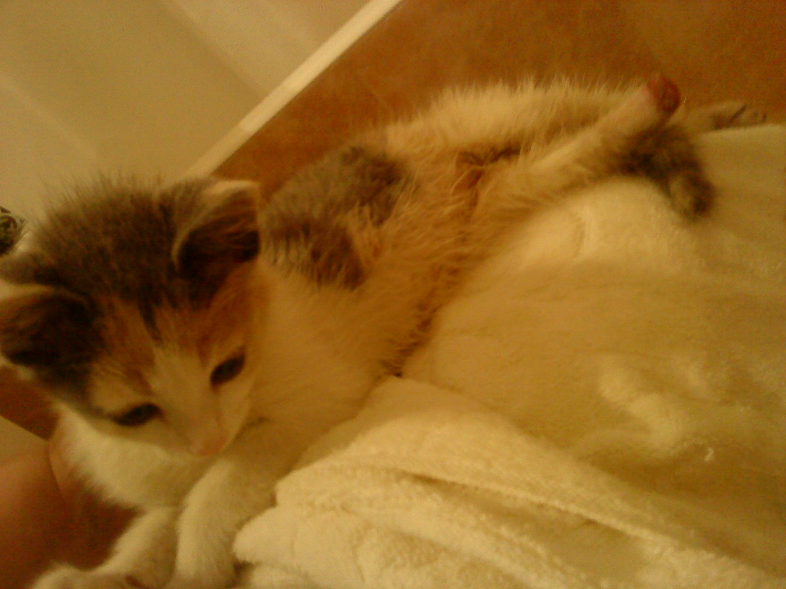 Ο γιατρος μας ειχε δικιο, δε βιαστηκε για εγχειρηση οπως αλλοι προτειναν αλλα καθαρισε χειρουργικα απλα τα ποδαρακια απο τα νεκρα και τελικα ανακαλυψε οτι απο το ενα μενει κοματι πατουσιου βεβαια χωρις οστα αλλα το χρησιμοποιει οποτε τωρα της βαζω επουλωτικη κρεμα και περιμενουμε. Ειναι μια κουκλιτσα φουντωτη με υφη περσικιας γατας πεντομάλακη και τρομερα χαδιαρα. Εξελισσεται λοιπον σε τριποδακι αν ολα πανε καλα!