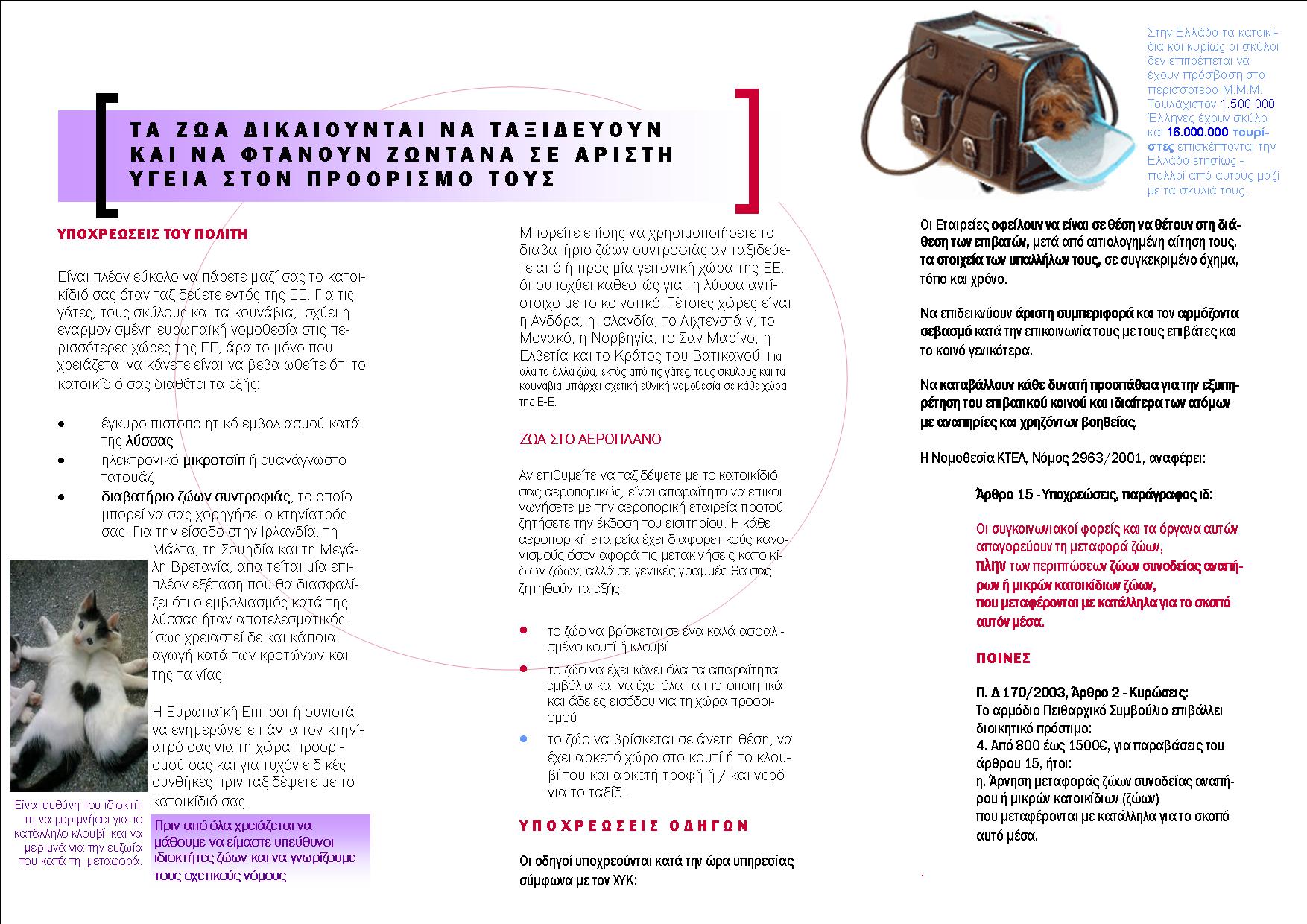 Ταξιδευετε με αυτο το φυλλαδιο μαζι σας ετσι βλεπετε τι λεει ο νόμος και τι αντιλέγει ο ΧΥΚ , ο νόμος ειναι πίο ισχυρος απο τον ΧΥΚ και εχετε και μια βεβαιωση κτηνιατρου οτι το ζωο απαγορευεται να μπει κατω καλου