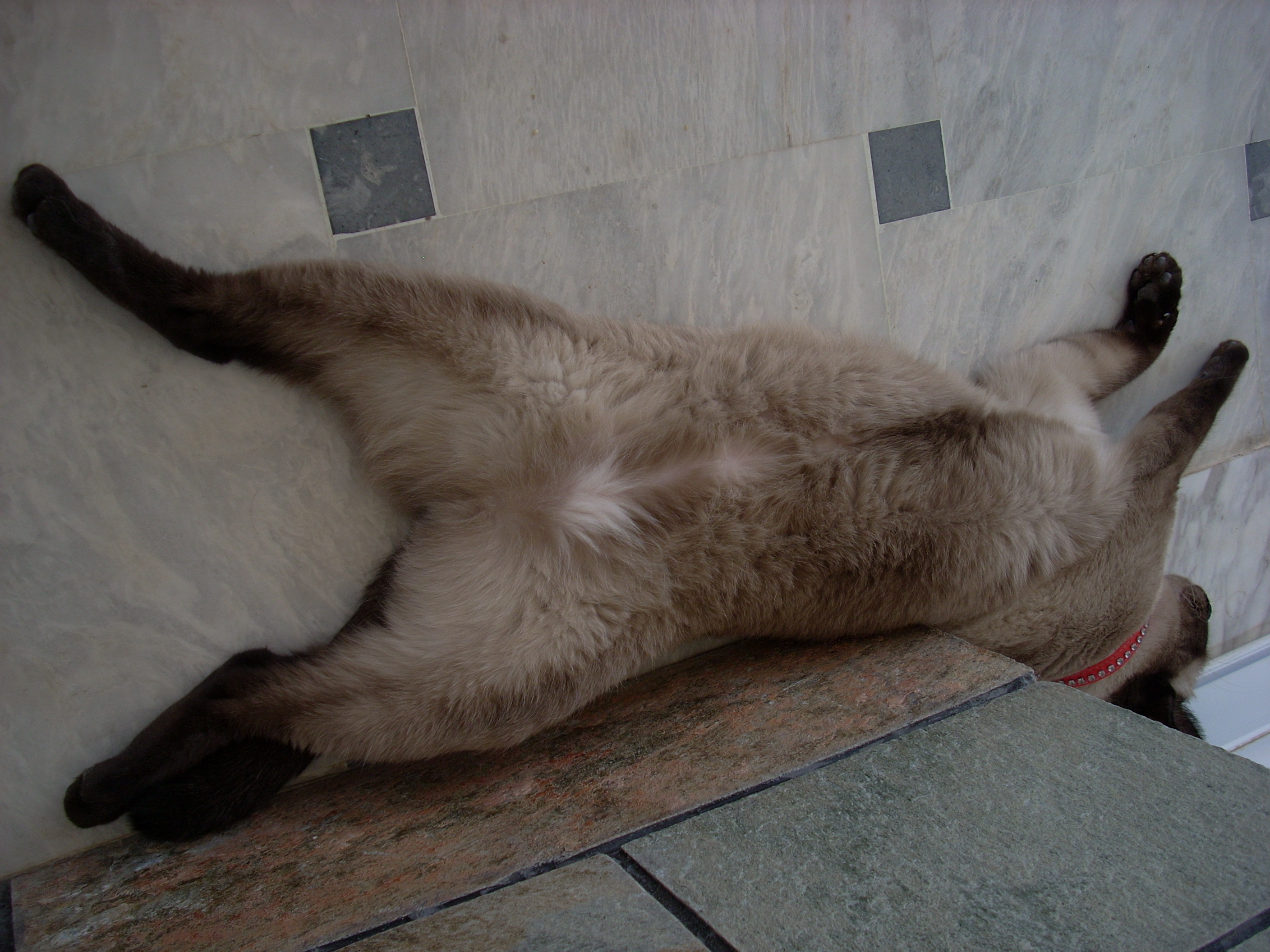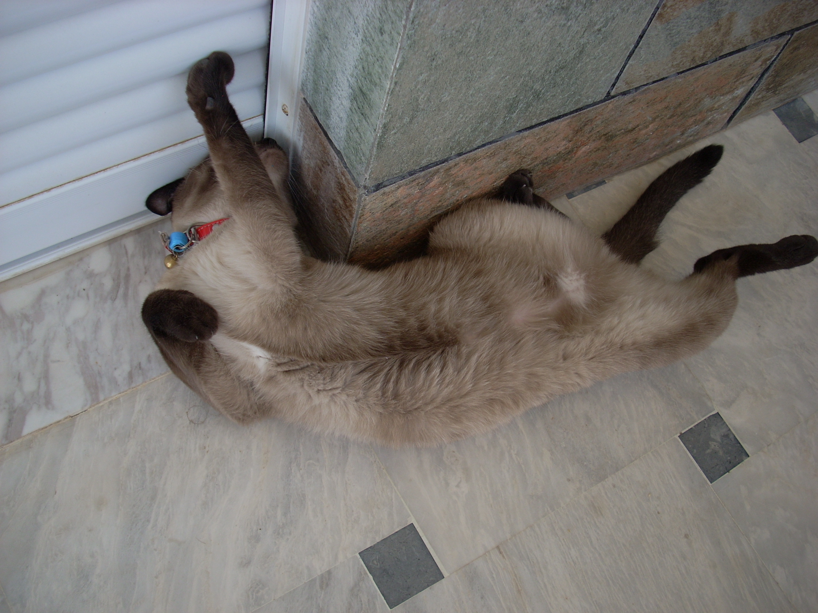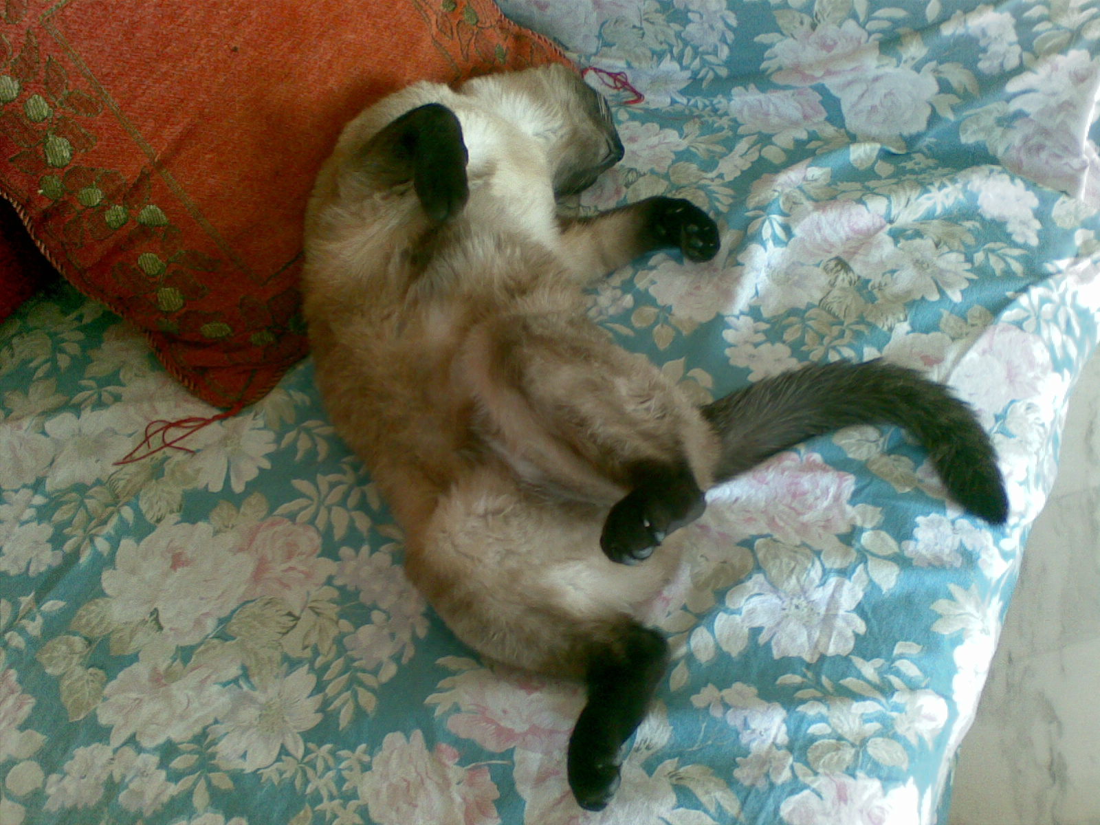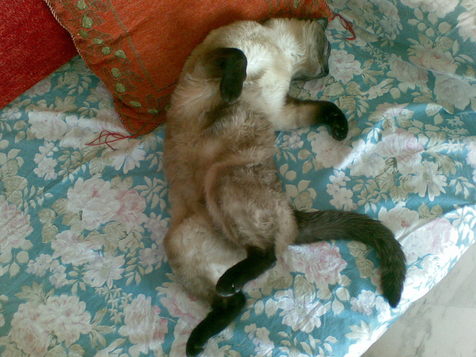 Πέντε χρόνια κάνουμε υπομονή.Το θέμα είναι ότι την αγαπάμε κι εμείς υπερβολικά,και δεν τις χαλάμε χατήρι.Ρε τι τρβάμε...Και είναι τόσο επικοινωνιακή η ρουφιάνα,σαν σκύλος κι ακόμα περισσότερο,πραγμα που ποτέ δεν το φανταζόμουνα ποτέ.Ξέρω γω...Λές να έχουμε αρχίσει να έχουμε μαζοχιστηκές τάσεις?Γάτα δεν είχαμε ποτέ,και δεν ξέρω αν είναι μια τυπική συμπεριφορά ΣΙΑΜ,ή συμβαίνει κάτι άλλο...ή μήπως έχω κάνει εγώ κάτι που δεν έπρεπε?