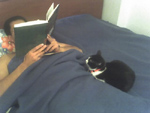 Στη φώτο ο Νίκος διαβάζει πριν τον ύπνο και η Μένια έχει πάρει θέση και περιμένει πότε θα σβήσουμε τα φώτα!