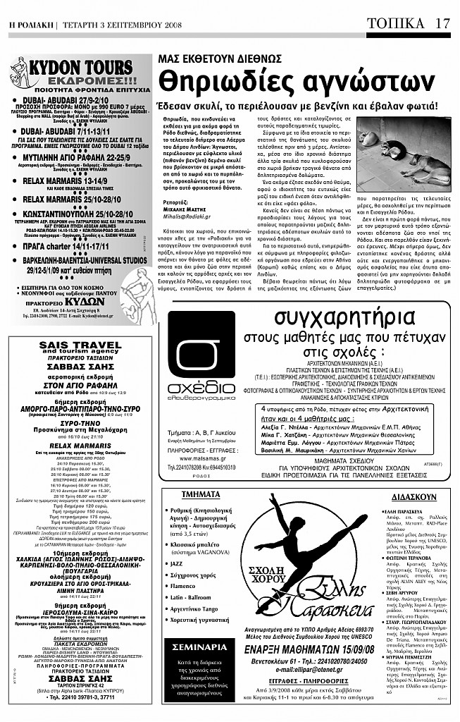 Βιάστηκα να μιλήσω στην Yasmin και να της πω ότι δεν έχω ακούσει περιστατικό κακοποίησης στην Ρόδο. Ξεφυλίζοντας όμως την Ροδιακή σε ηλεκτρονική μορφή διάβασα αυτό:down: Ελπίζω να φαίνεται