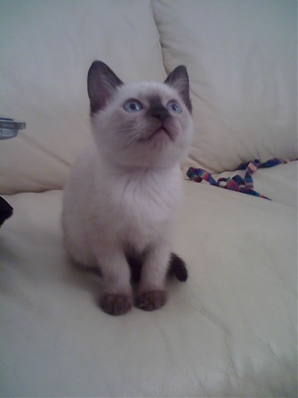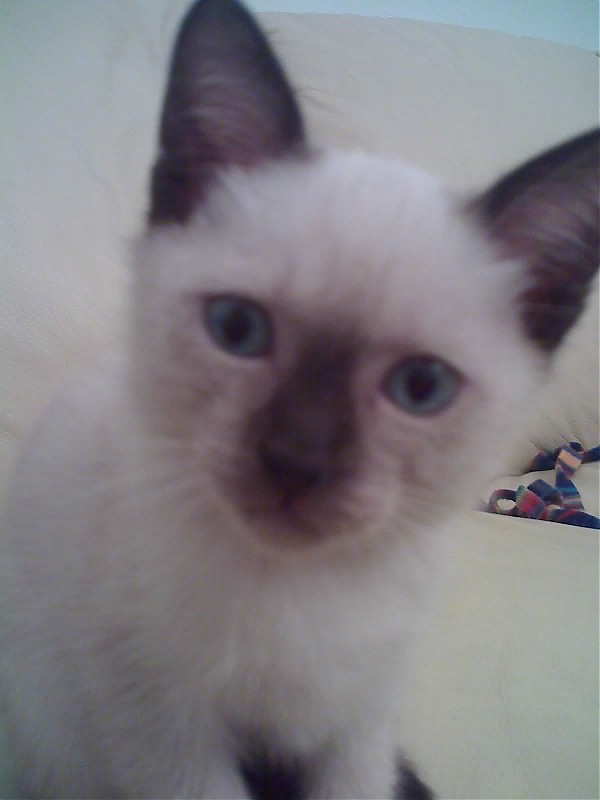), ιδανική παρέα για τον Τεραμέλα μας :cat::greycat:Πήρα τηλέφωνο στην αγγελία: ο γατοπατέρας (ιδιώτης, γατόφιλος, με δύο γάτες Σιάμ που έκαναν την πρώτη τους γέννα και σκέφτεται να τις στειρώσει σύντομα) μου είπε πως του έχει μείνει μόνο μια μικρούλα 2 μηνών. Ζήτησα να πάμε να τη δούμε (ο φίλος μου συμφώνησε στο "πάμε απλά να δούμε πώς είναι τα Σιάμ", το οποίο βέβαια το εννοούσα εκείνη την ώρα, γιατί ειλικρινά φοβόμουν την αντίδραση του Μέλα σε νέα γάτα στο σπίτι), αλλά μένουμε Ακρόπολη, δεν έχουμε αμάξι και ήταν στο Μπουρνάζι. Τελικά προθυμοποιήθηκε να μας τη φέρει στο σπίτι να τη δούμε και με την ευκαιρία θα της κάναμε και ένα κάστινγκ πώς θα τα πάει με το Μέλα.