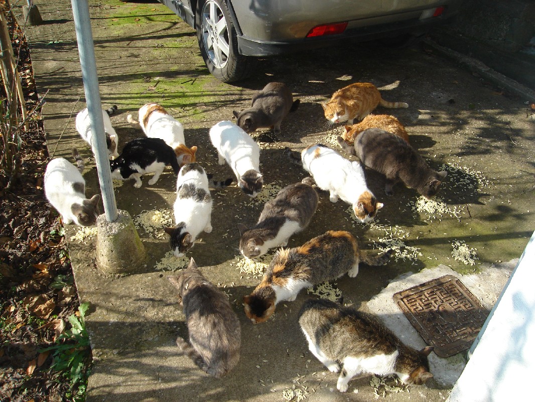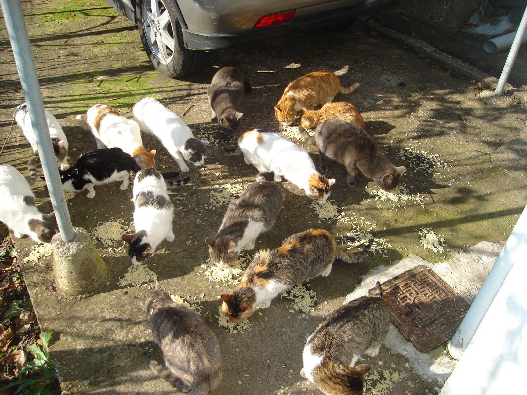 παιδια καλημερα καλη χρονια. ειχαμε παει σ ενα χωριο στην ορεινη ναυπακτια και δειτε τι βρηκα (Η εικόνα βρίσκεται στο τέλος του κειμένου) τις ταιζαμε πρωι βραδυ. ηταν πολλες τουλαχιστον 15. κ οταν τους βαζαμε φαγητο γινοταν πανζουρλισμος. επειδη εκει κοντα δεν ειχε μαγαζια ειχαμε υπολογισει το φαγητο αναλογα τα ατομα κ τις ημερες. το μοιραστηκαμε με τα κατσουλια κ δεν μας πειραξε καθολου. δεν ειχαμε γατοτροφη και τους φτιαχναμε μια κατσαρολα φαι το πρωι κ μια το βραδυ κ κατι μεζεδακια ενδιαμεσα. στην αρχη μερικοι της παρεας τσινισαν που εδινα φαγητο στις γατες, μετα ομως ξυπναγαμε κ λεγαμε γρηγορα να μαγειρεψουμε για τα γατακια. οποιος ξυπναγε πρωτος εβαζε τη κατσαρολα ηταν πολυ γλυκια παρεα κ στεναχωρηθηκαμε που τα αφησαμε Σημείωση: Το μήνυμα αυτό γράφτηκε 17 χρόνια πριν. Ο συντάκτης του πιθανόν να έχει αλλάξει απόψεις έκτοτε.
