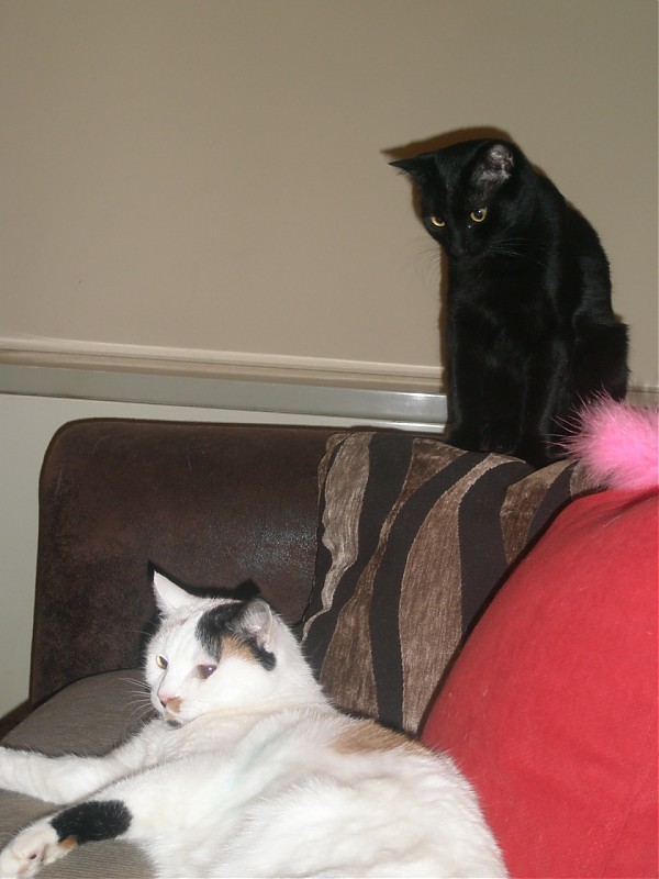 Όσο για τις τριχρωμούλες, τη Λίζα και την Εύα, μόλις άνοιξα τη φωτογραφία τους, η Μπασσέτ όρμηξε στην οθόνη, που πολύ σπάνια το κάνει, και χάιδευε με το πόδι της , σαν κάτι να αναγνώρισε, περίεργα πράγματα