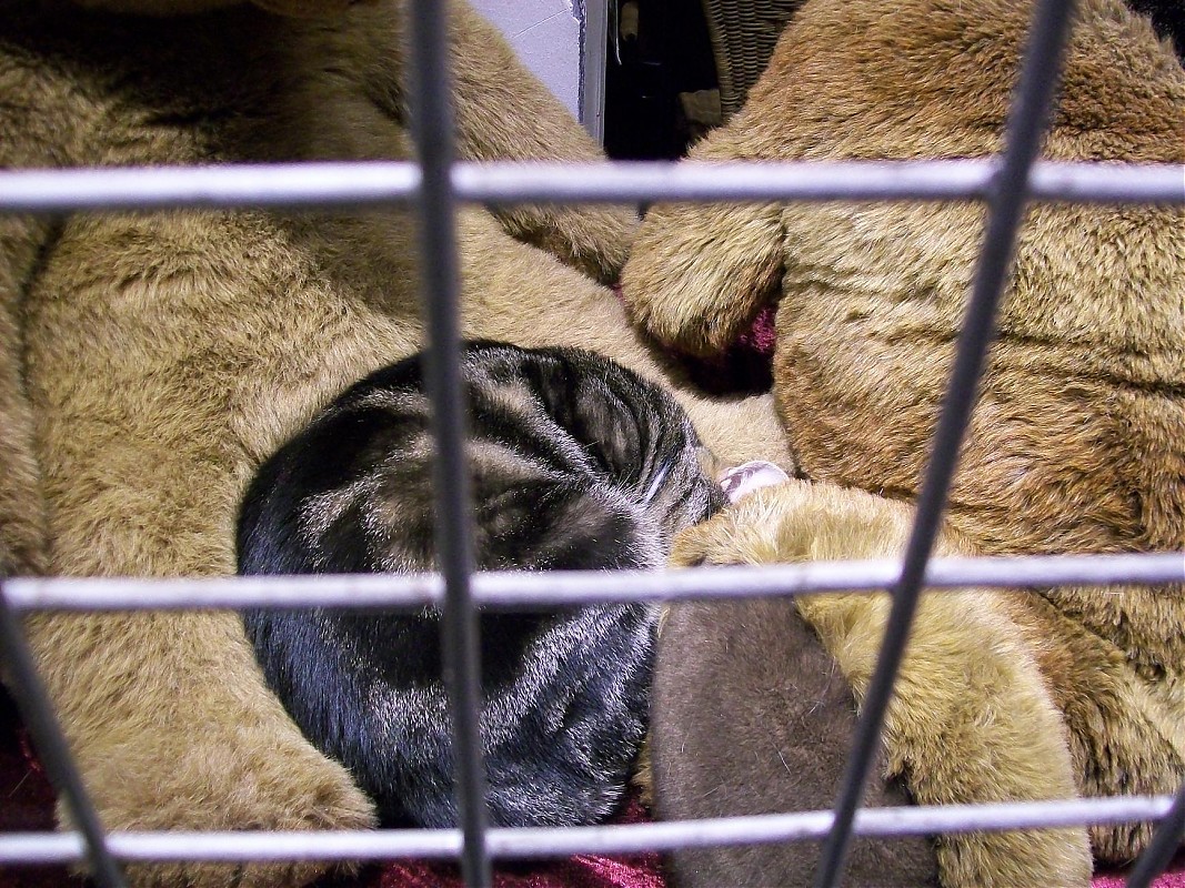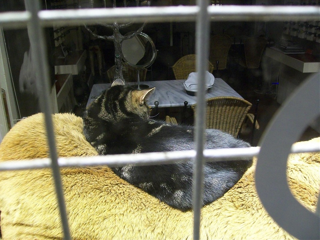 Αυτά τα δύο ήταν σε μία βιτρίνα ενός μαγαζιού(το μαγαζί ούτε που πρόσεξα τί μαγαζί ήταν:redface:) το οποίο ήταν κλειστό και είχε στην βιτρίνα 2 λούτρινα μεγάλα αρκούδια(το κρεββατάκι των γατιών;))