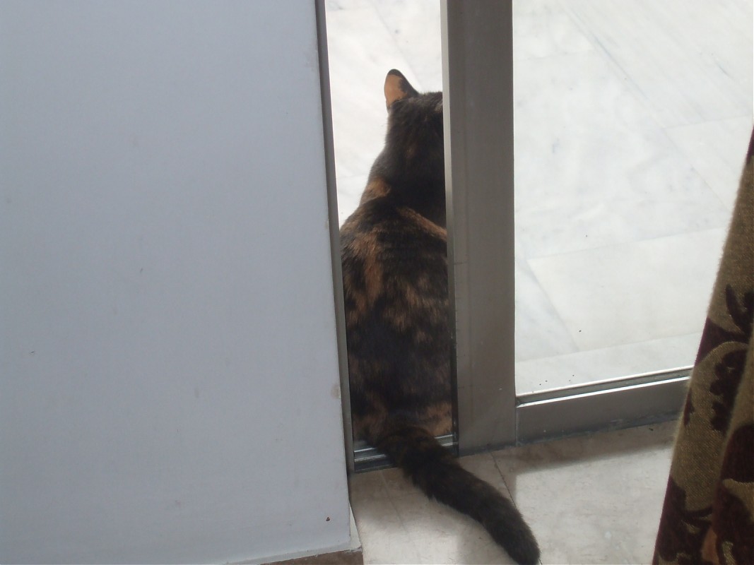 Κάθησε εκεί περίπου 15 λεπτά χωρίς να κουνηθεί και, αφού ξεπαγιάσαμε, την έδιωξα και έκλεισα την πόρτα, όπου, μετά από ένα δευτερόλεπτο στήθηκε ξανά για να μπαινοβγεί