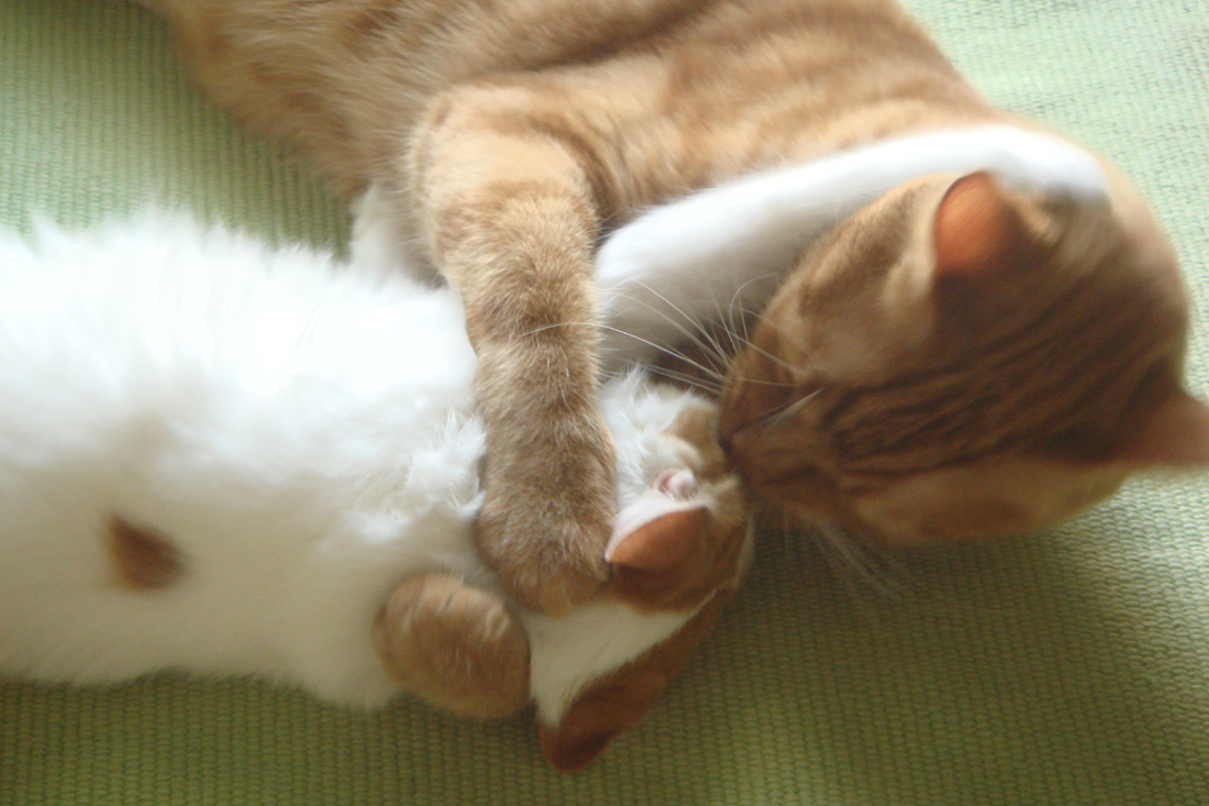 Αρχική Δημοσίευση από ruko: Να βάλω και μερικές ακόμα φωτό από τα μικρά μου. Άλλωστε, οι περισσότεροι δεν τα ξέρετε. Πρώτα μια σχεδόν οικογενειακή φωτό (λείπει ο Φένστερ). Από αριστερά: Ρουμποτύρης, Πετουλίτα, Μπελάς. Στη δεύτερη, ο Φένστερ σε ρόλο μοναχικού λύγκα. Στην τρίτη Φένστερ και Ρουμποτύρης σε μεγάλες αγάπες. Click για ανάπτυξη... Μα είναι λατρείες εντελώς;;; Σημείωση: Το μήνυμα αυτό γράφτηκε 18 χρόνια πριν. Ο συντάκτης του πιθανόν να έχει αλλάξει απόψεις έκτοτε.