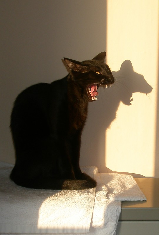 Εμένα ,παιδιά, η Μπασσέτ μάλλον έχει κλειστοφοβία Μπαίνει, βέβαια στη ντουλάπα, άμα την πετύχει ανοιχτή, κάνει τα καθιερωμένα (μυρίζει γύρω γύρω, τσιγκλάει τις ζώνες, τα κορδόνια, ό,τι κρέμεται τέλος πάντων κλπ).....και βγαίνει. Ενώ είναι μέσα, κλείνω καμιά φορά την πόρτα ή την μισοκλείνω, για να μη φοβηθεί, τίιιιποτα, ή βγαίνει ή περιμένει όρθια πίσω από την πόρτα της ντουλάπας με τα μάτια ορθάνοιχτα, να της ανοίξω (δεν νιαουρίζει να της ανοίξω, γιατί δεν νιαουρίζει σχεδόν ποτέ). Σημείωση: Το μήνυμα αυτό γράφτηκε 17 χρόνια πριν. Ο συντάκτης του πιθανόν να έχει αλλάξει απόψεις έκτοτε.