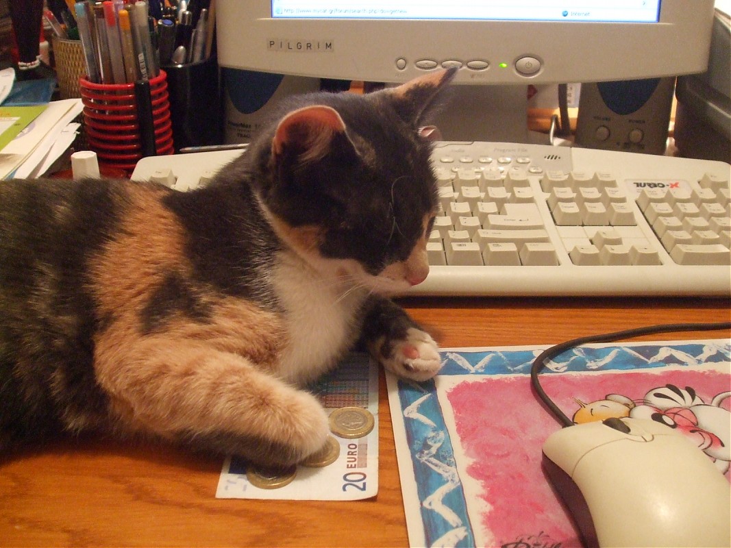 Αρχική Δημοσίευση από Ελένη Π: Το κορίτσι μου κάθησε σκοπιά να φυλάει τα λεφτά της μαμάς της ,σε καιρούς οικονομικής κρίσης είμαστε μην το ξεχνάμε, αλλά, ....είχε φάει και λίγο παραπάνω, μουρμούραγε και η τηλεόραση, είχε χοροπηδήσει και αρκετά και......χρρρρφστ, χρρρρρρφστ... Click για ανάπτυξη... Μπραβο Μπασσυ αν και μικρουλα ακομη, την βρισκω πολυ συνετη και οικονομα ! Προς υποψηφιους γατογαμπρους, να ενα κοριτσι απο σπιτι! Σημείωση: Το μήνυμα αυτό γράφτηκε 17 χρόνια πριν. Ο συντάκτης του πιθανόν να έχει αλλάξει απόψεις έκτοτε.