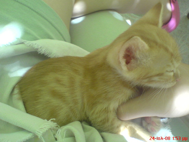 Αα, κι άλλος πορτοκαλόγατος! Γλύκας είναι!! Πάσχει κι αυτός από μαμακίαση; (Είναι γενετική νόσος των πορτοκαλόγατων απ' ό,τι έχουμε συμπεράνει στο φόρουμ).:P