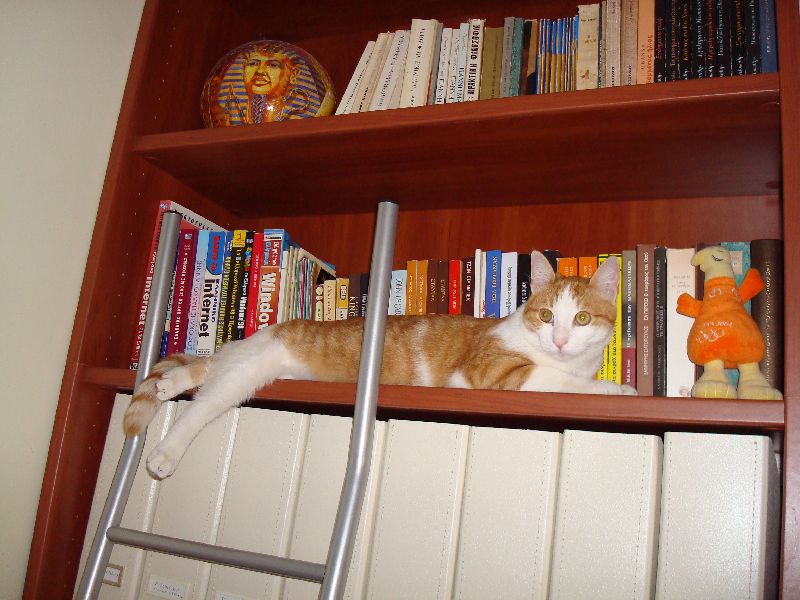 Αρχική Δημοσίευση από Κείρα: Εχετε ξαναδεί γατί να διαβάζει τον Ποινικό Κώδικα; Είμαστε ξυπνια γατιά τα κεραμίδια. Ο,τι νομικές συμβουλές, μην φοβάστε, είναι εδω ο Ρού. Click για ανάπτυξη... Για αυτο παντα ειχαμε μια ιδιαιτερη συμπαθεια στον Ρου.:kiss: Ειναι διανοουμενο γατι!Επειδη και η Μυρτουλα ειναι της διανοησης, μηπως αγαπητη μας Κειρα τους καναμε κανενα κονε! Δειτε την στην πρωτη φωτο.Και ο Αρης αρεσκετε να ξαπλωνει στα ραφια της βιβλιοθηκης, αλλα που να ανοιξει κανενα βιβλιο! Δεν το πιστευω, βρεθηκε υποψηφιος γαμπρος για την Μυρτουλα! Και παντα φοβομουν οτι θα μου μεινει στο ....ραφι! Σημείωση: Το μήνυμα αυτό γράφτηκε 17 χρόνια πριν. Ο συντάκτης του πιθανόν να έχει αλλάξει απόψεις έκτοτε.